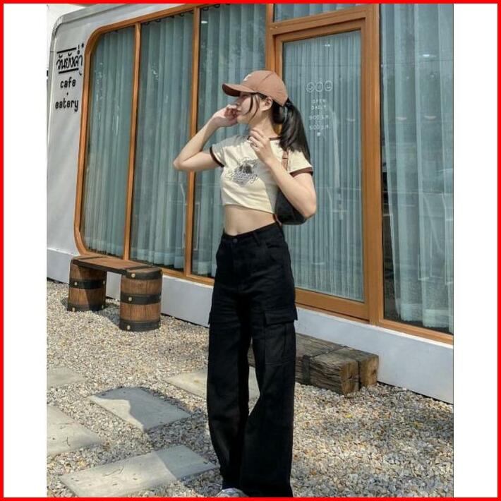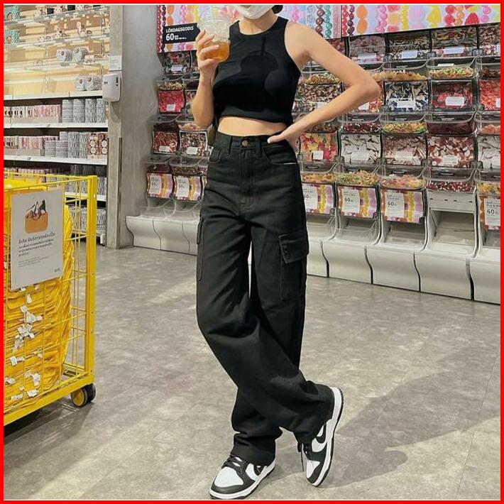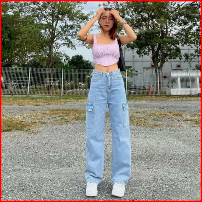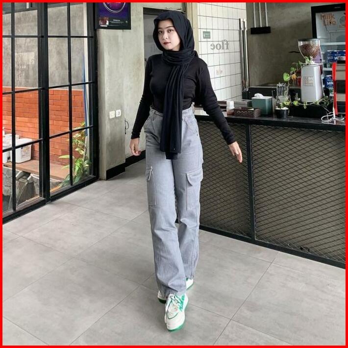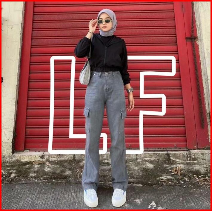 Celana Highwaist Cargo Jeans Wanita Voll 2