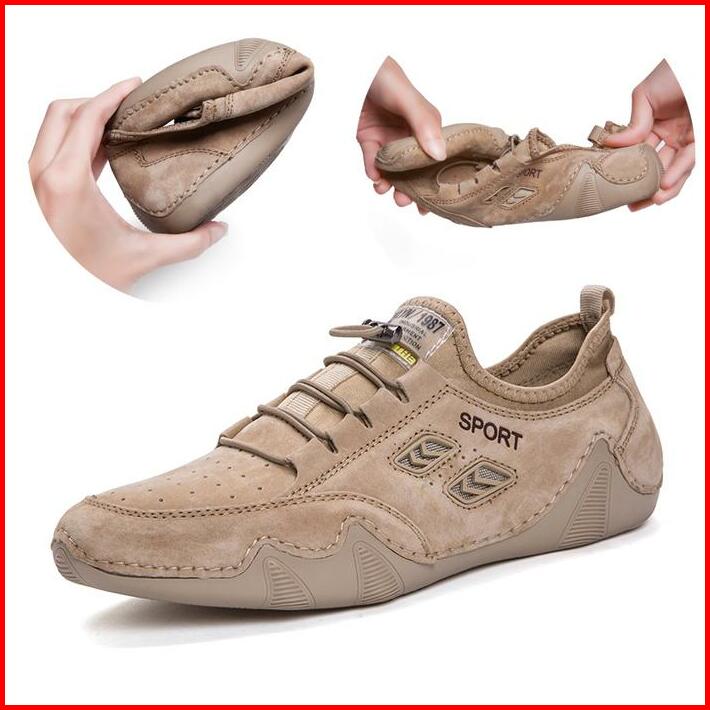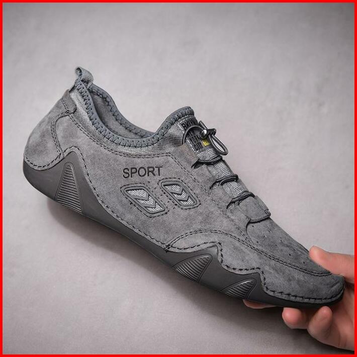 Prelesty Sepatu Santai Pria Casual Tali Slop Pantofel Kulit Asli Loafer Cowok Slip On Murah Kerja Kantor Ringan Karet Ke