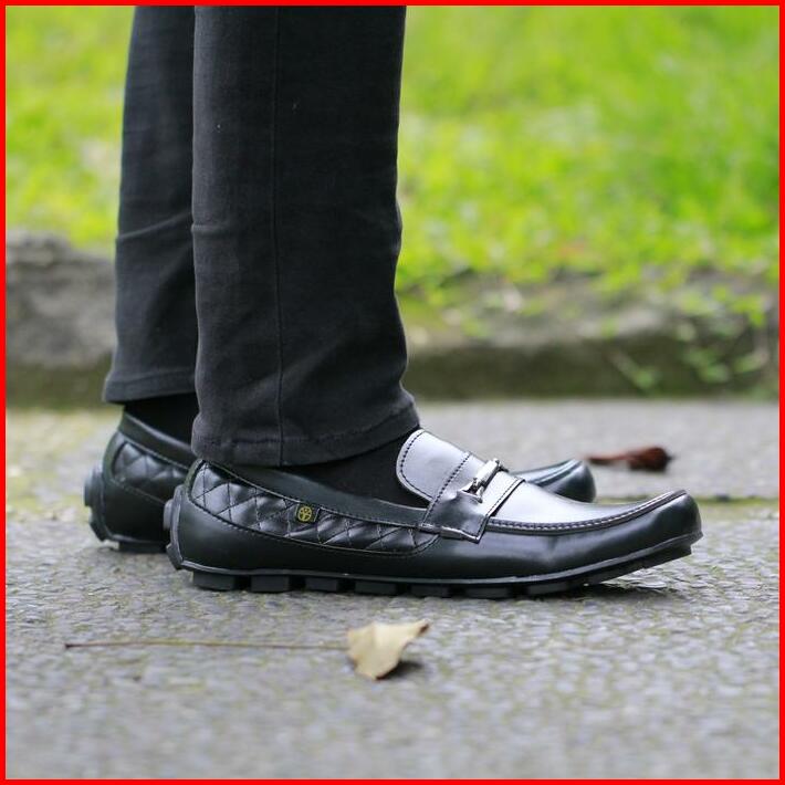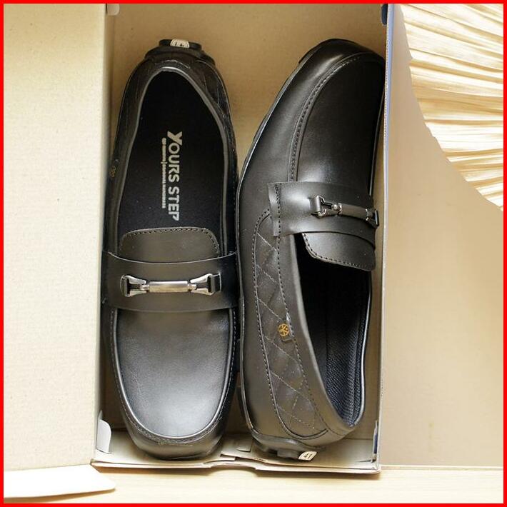 Yoursstep Sepatu Formal Pria Kantor Slip On Hitam Semi Kulit Flat Shoes Kerja Kasual
