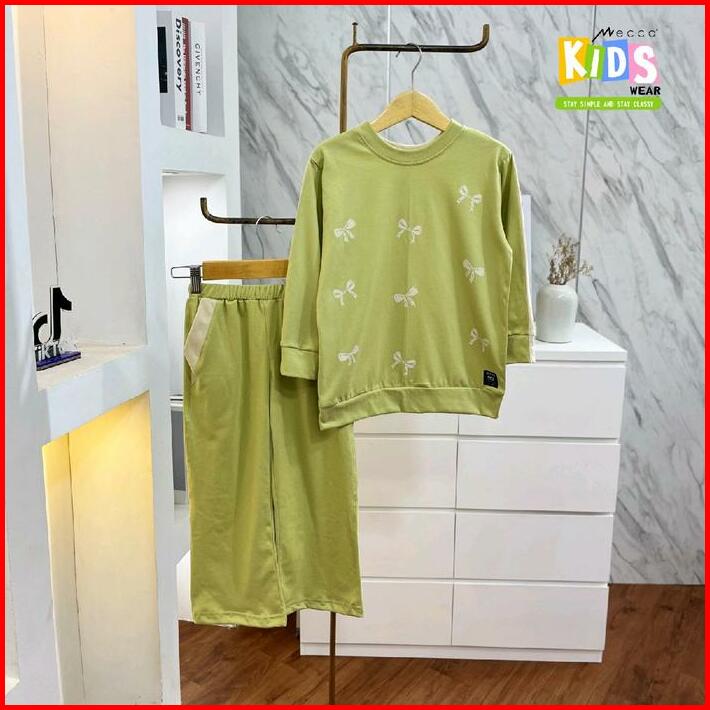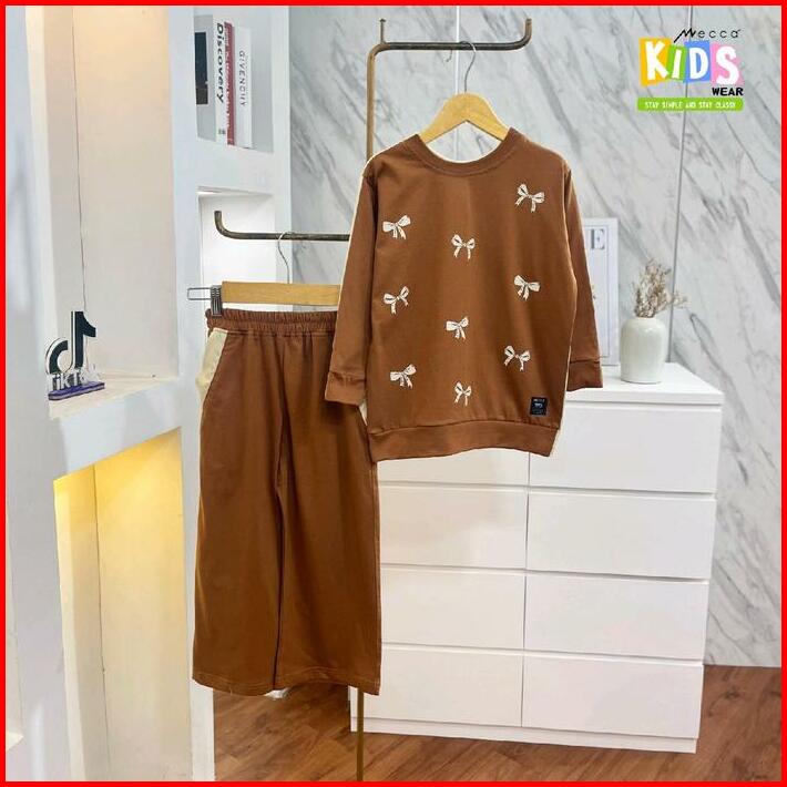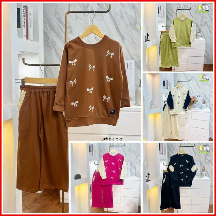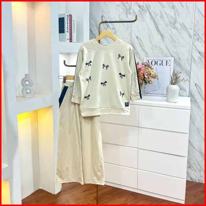 Setelan Celana Kaos Anak Twotone Oversize Motif Pita Couple Mom Kids Combed Atasan Panjang Wanita Dewasa