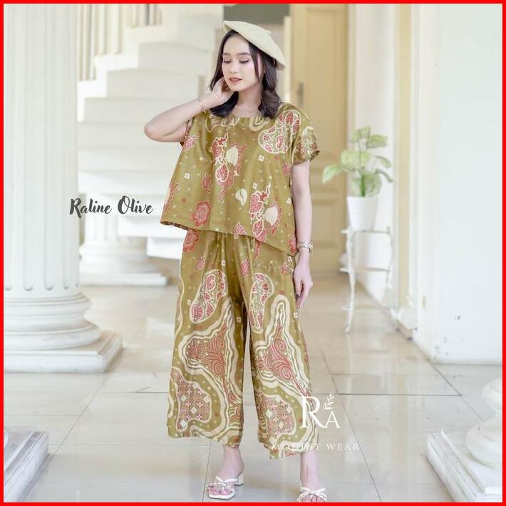 Setelan Raline Atasan Pendek Dan Celana Panjang Motif Rayon By Batik R.a Untuk Wanita Remaja Baju Kulot Katun Dewasa