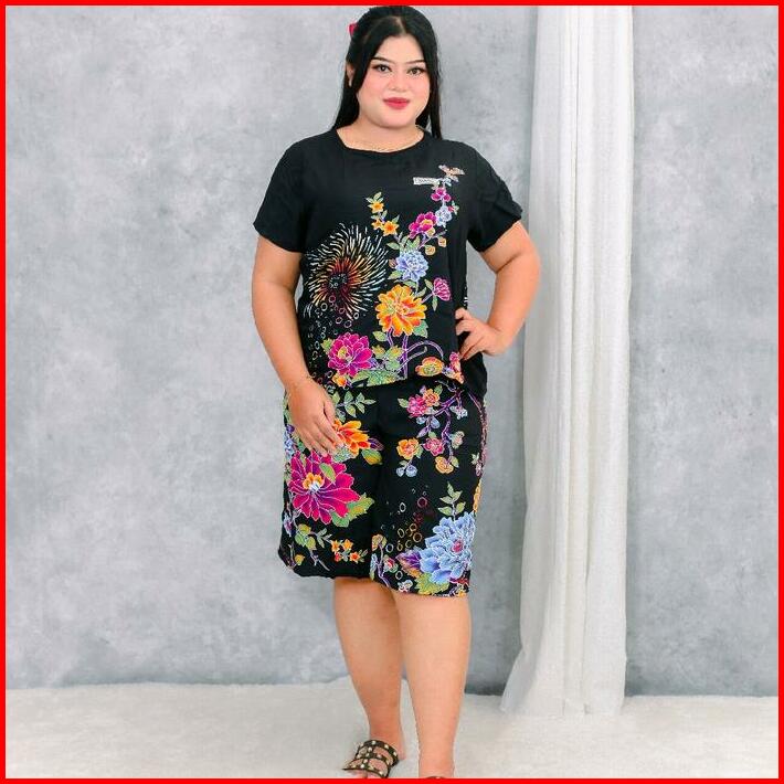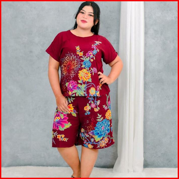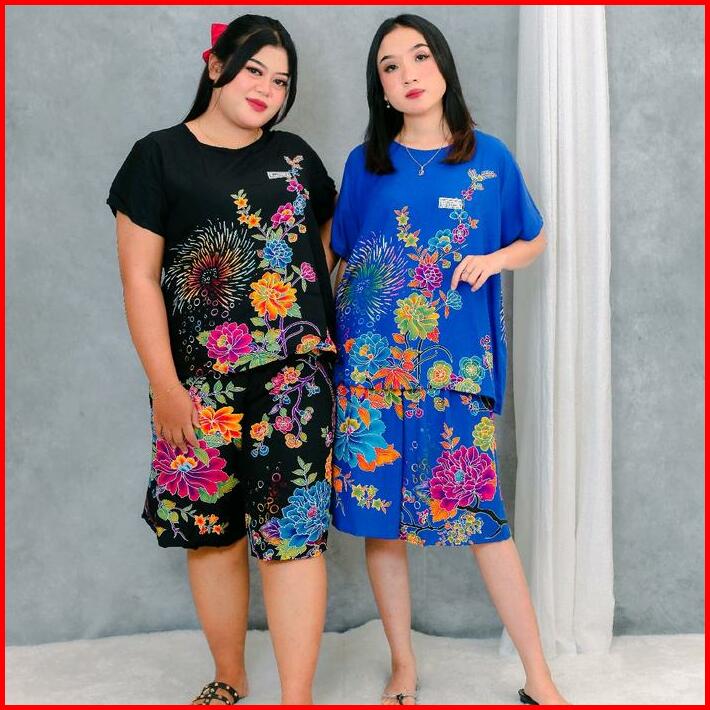 Kencana Ungu Setelan Celana Pendek Kencana Ungu Ori Label Biru Batik Halus Asli Setelan Celana Rok Jumbo Pakaian Rumahan