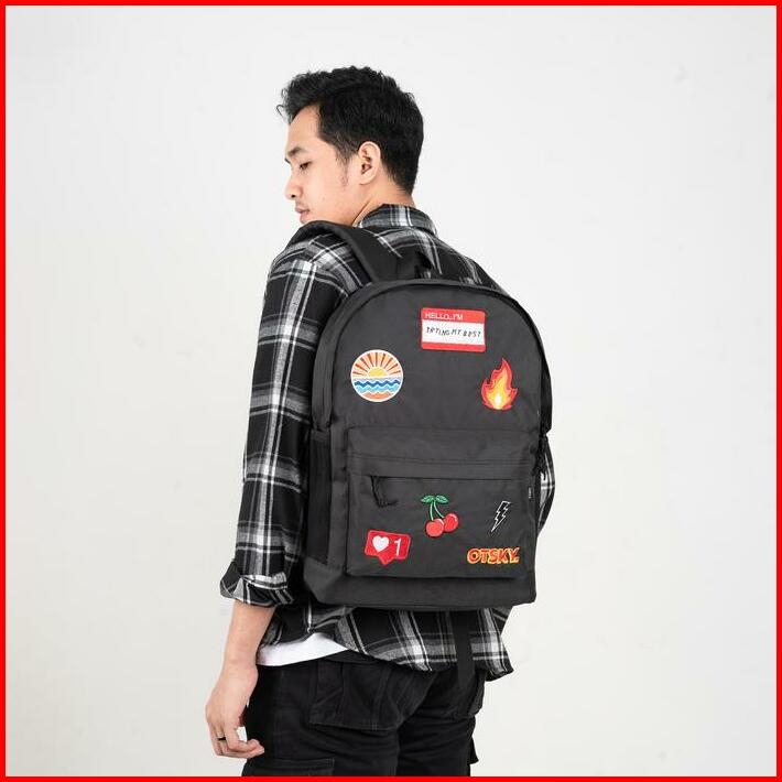 Otsky Tas Ransel Backpack Sticker Black Bordir Premium Pria Wanita