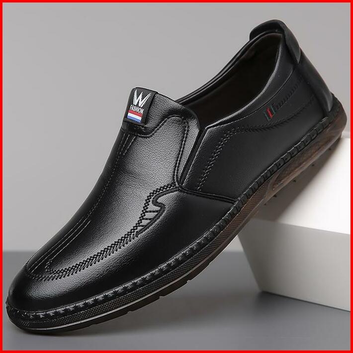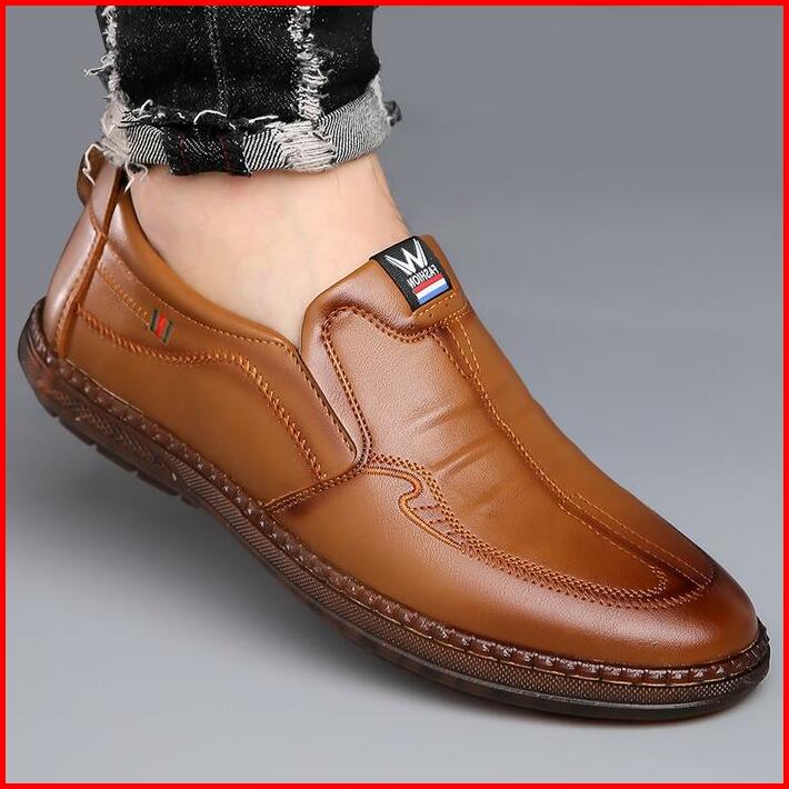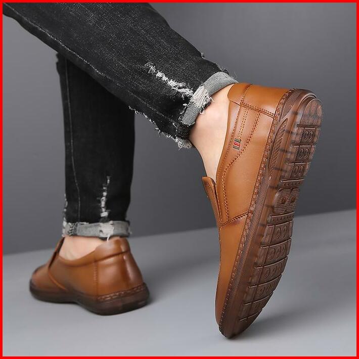 Prelesty Sepatu Pantofel Pria Kulit Asli Kerja Santai Semi Formal Handmade Sepatu Slip On Tanpa Tali Kantor Kuliah Karet