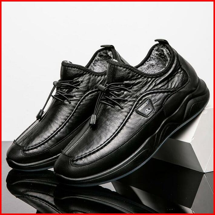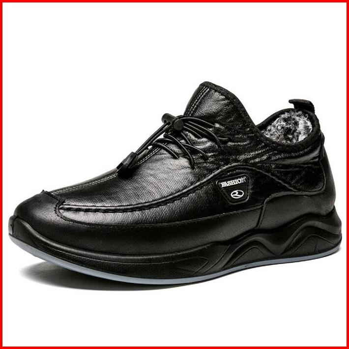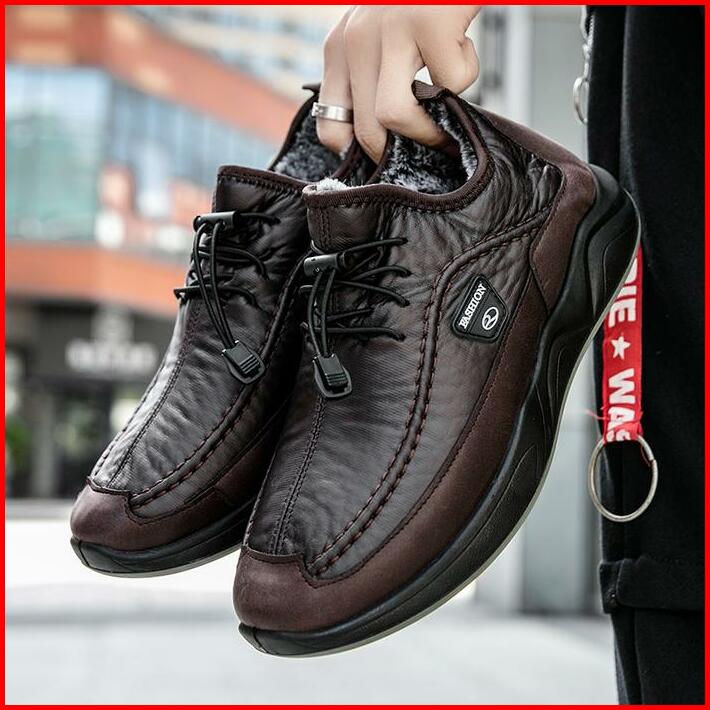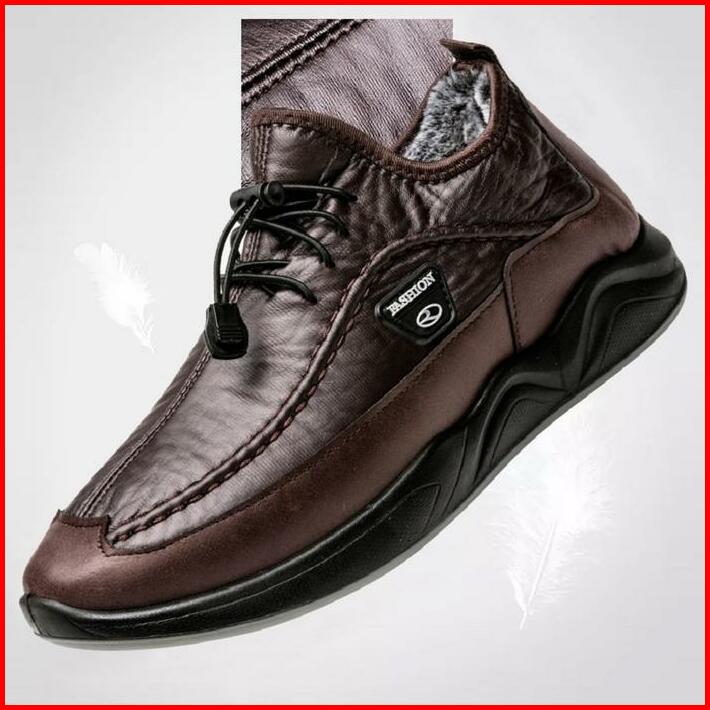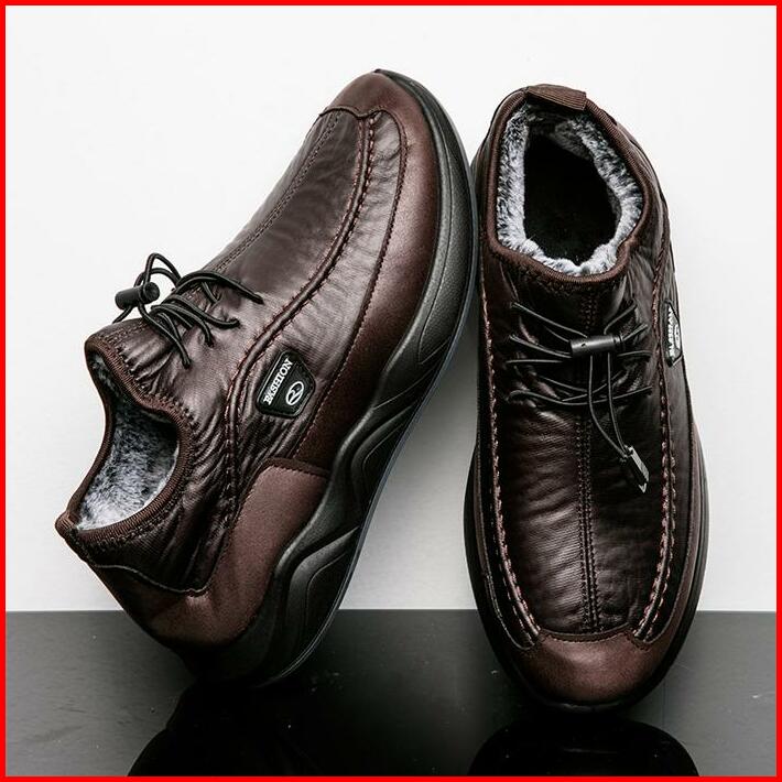 Prelesty Sepatu Semi Formal Pria Pantofel Tali Kerja Kantor Bulu Hangat Cowok Dewasa Tahan Air Waterproof Hitam Cokelat