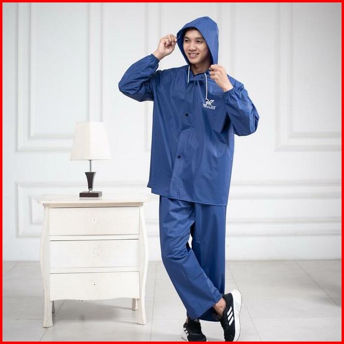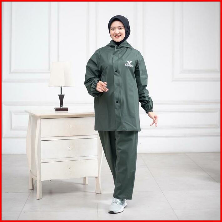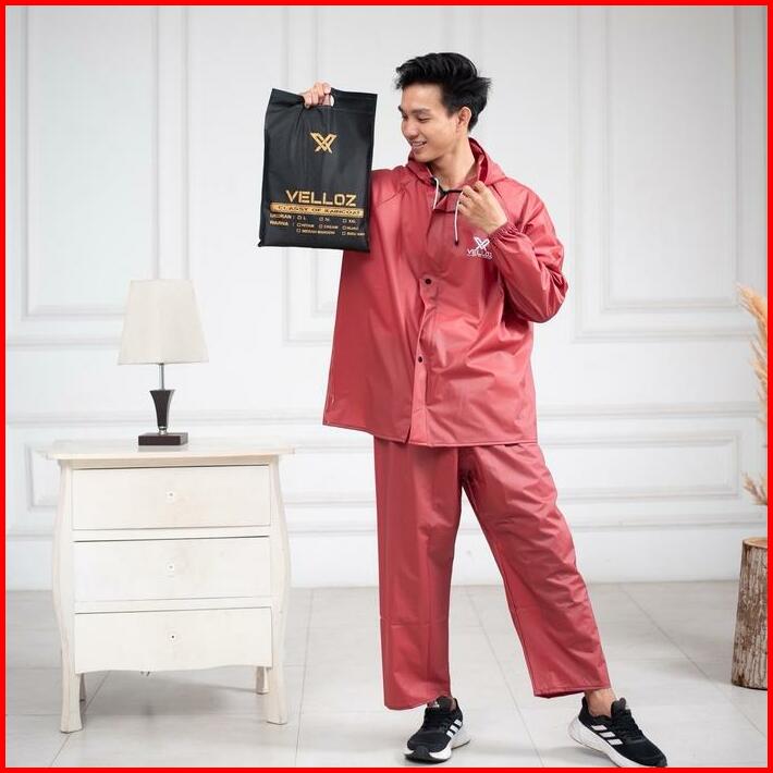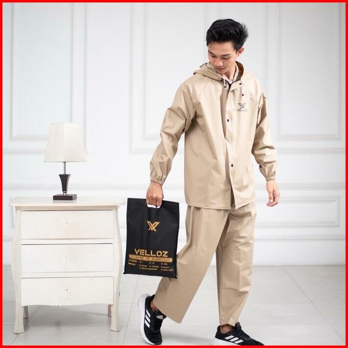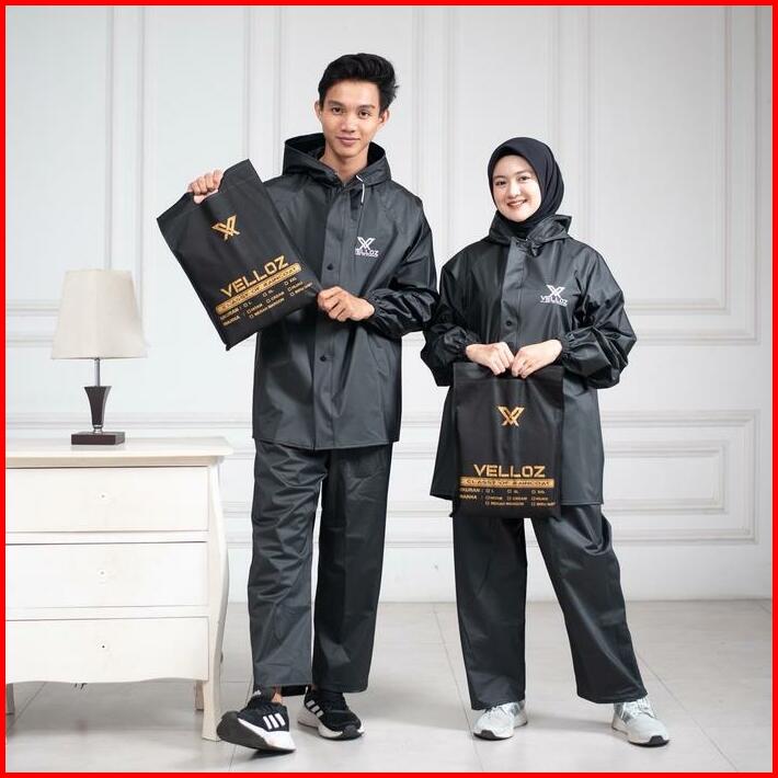 Jas Hujan Raincoat By Velloz Original Setelan Pria Wanita Bahan Tebal Elatis Dan Anti Rembes Hijau Biru