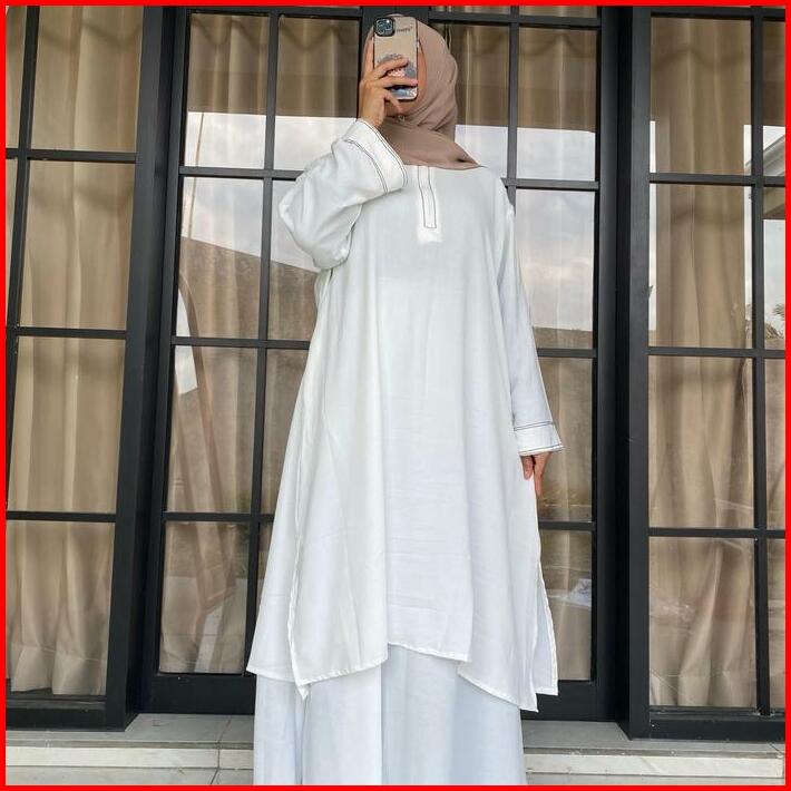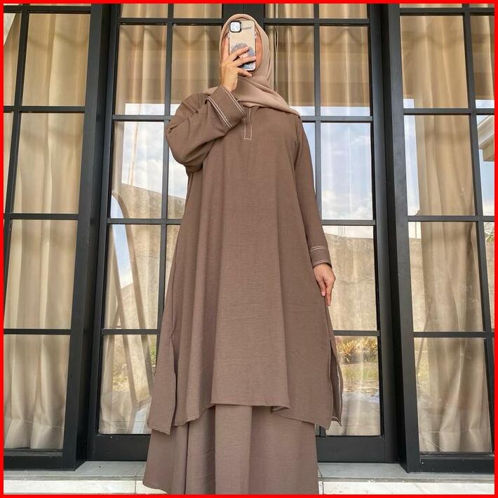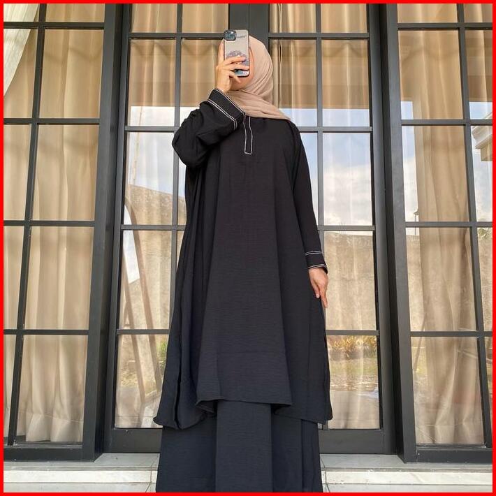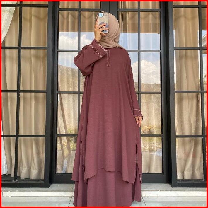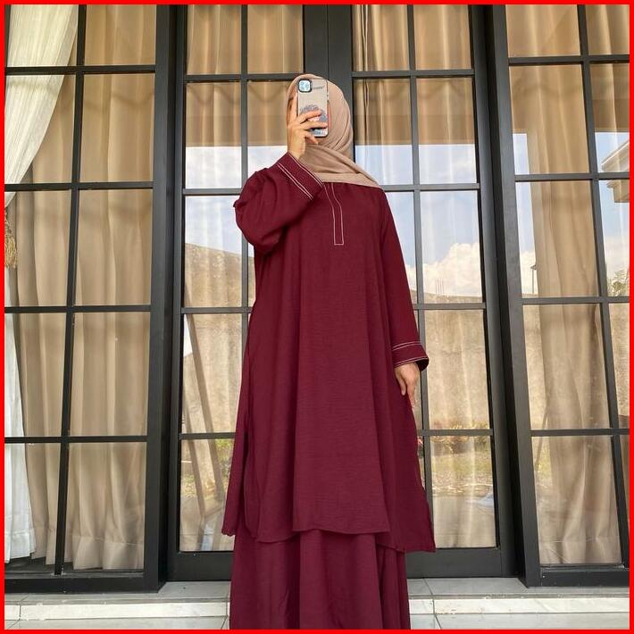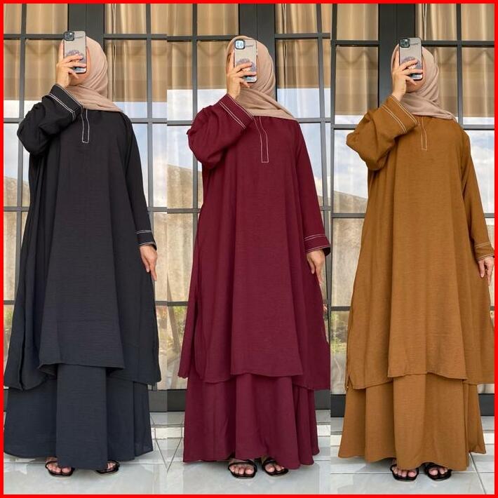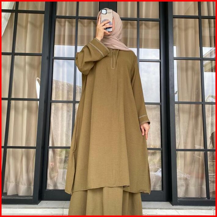 Fatimah Setelan Tunik Rok Muslim Abaya One Set Tunik Melayu Wanita Remaja Crinkle