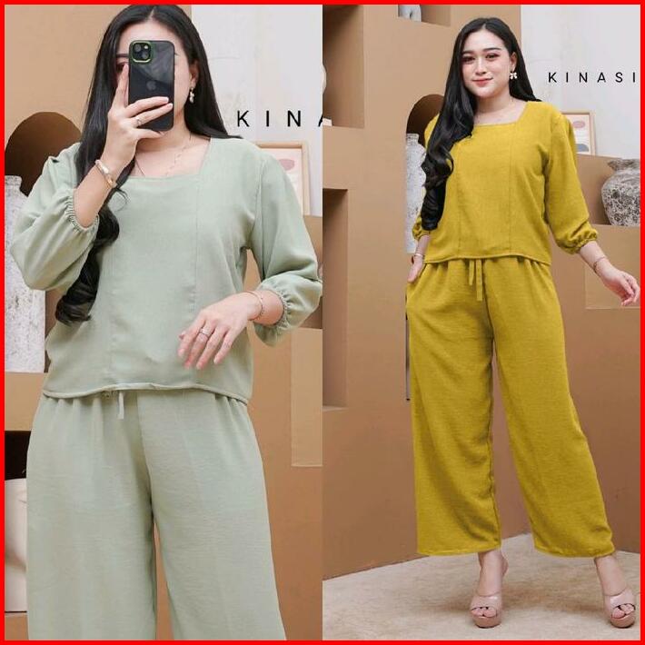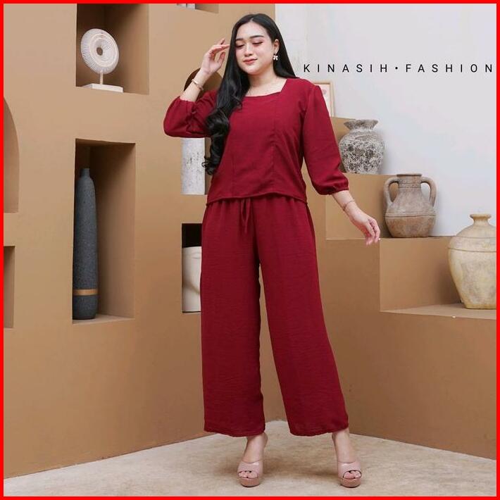 One Set Alica Crop Cringkel Airflow Premium Ada Brossnya Setelan Polos Kekinian Polos Atasan Celana Panjang Wanita