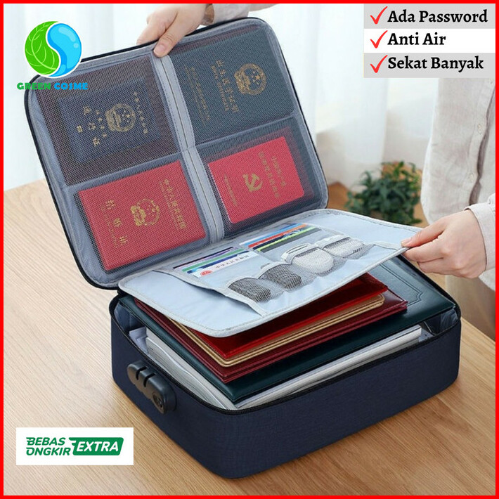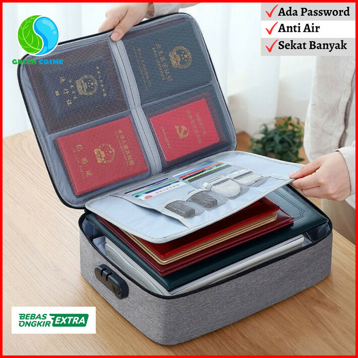 Tas Koper Dokumen Anti Air Password Travel Bag Penyimpanan Surat
