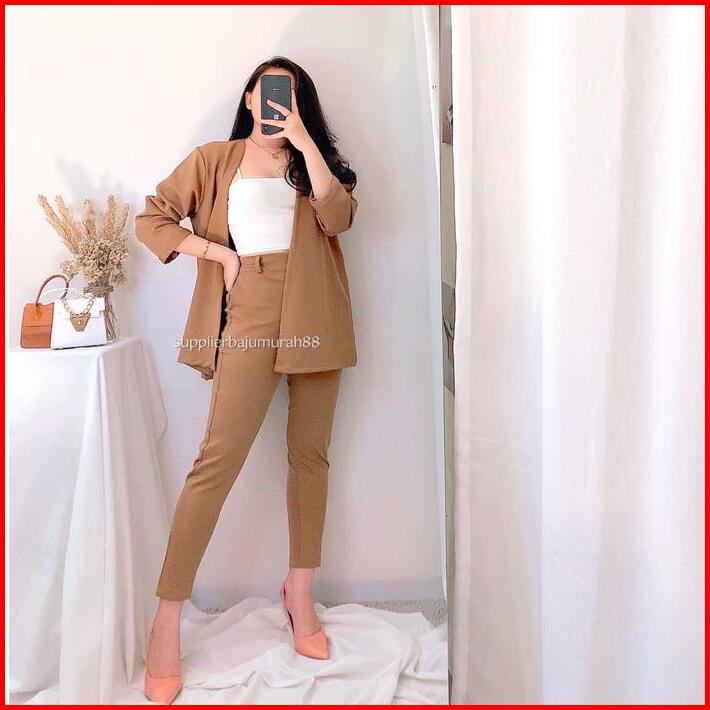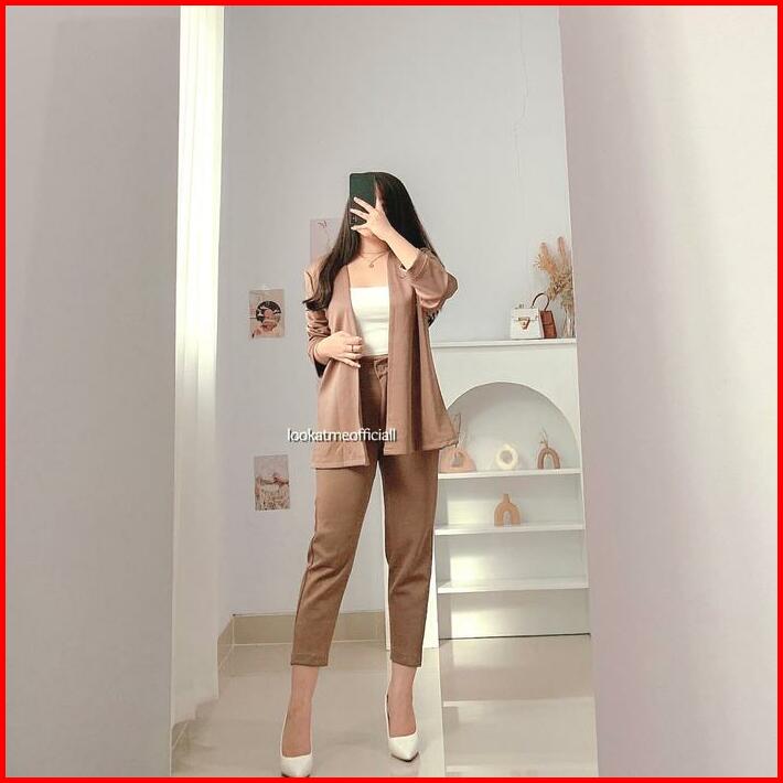 Lookatmeofficial Setelan Blazer Scuba 2in1 Aurora Set Outer Pants Premium Karet Panjang Celana Wanita Atasan Tebal