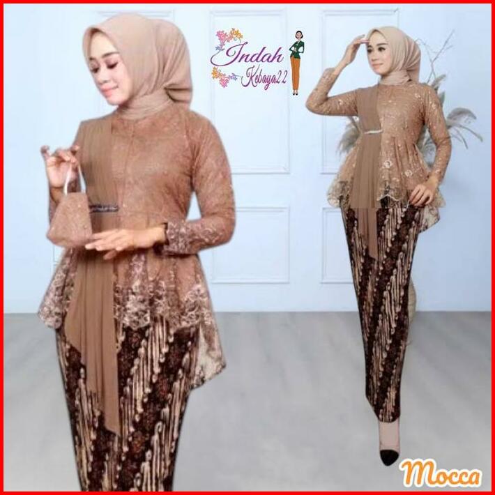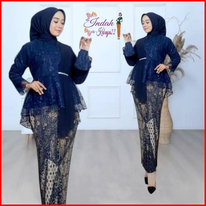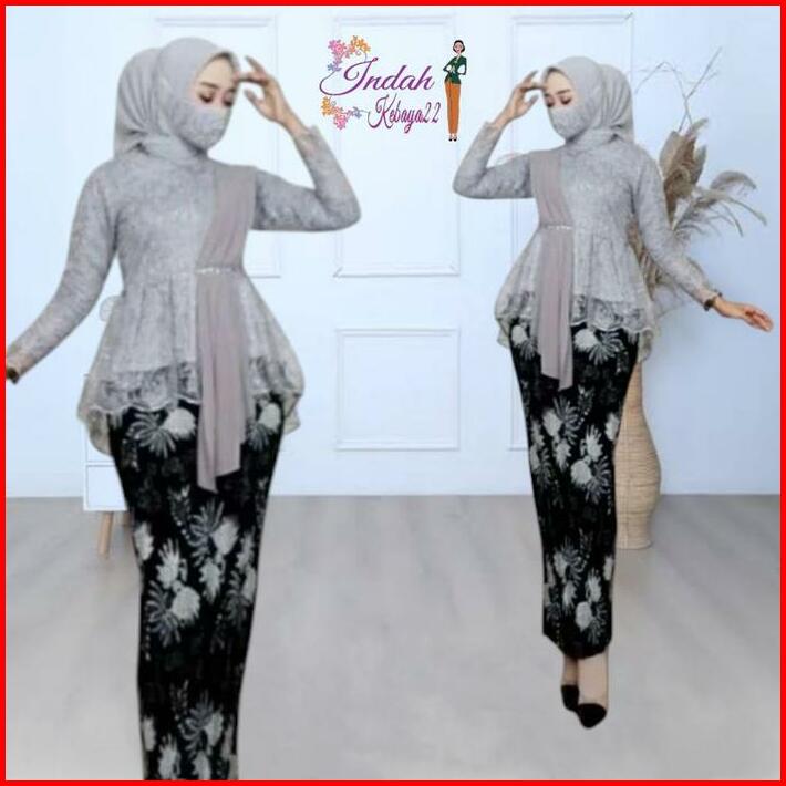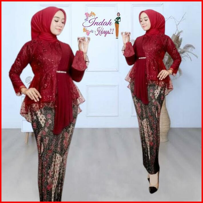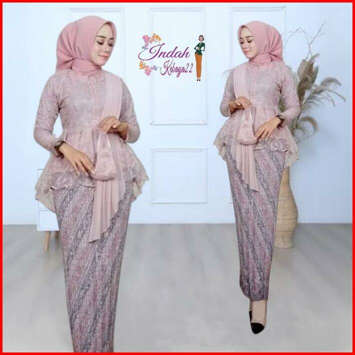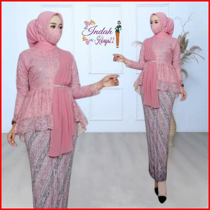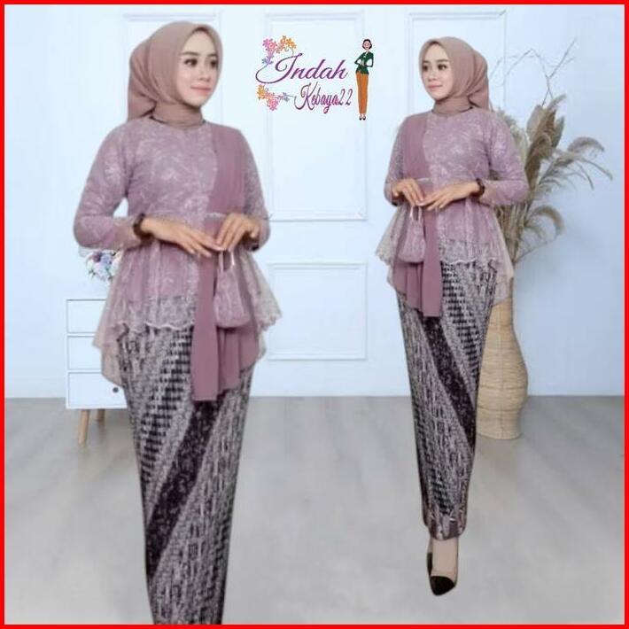Setelan Kebaya Elegan Modern Aurora Selendang Atasan Baju Kebaya Wanita Remaja Brokat Tile Kebaya Wisuda Lamaran Pesta K