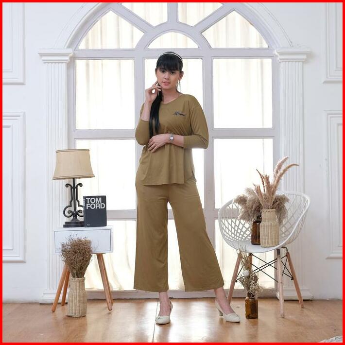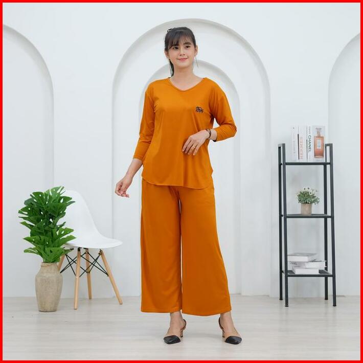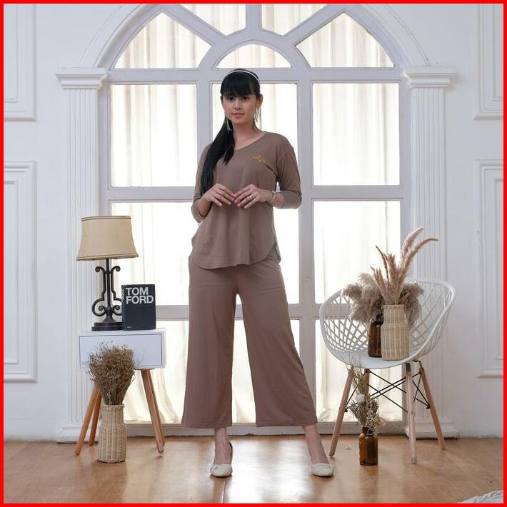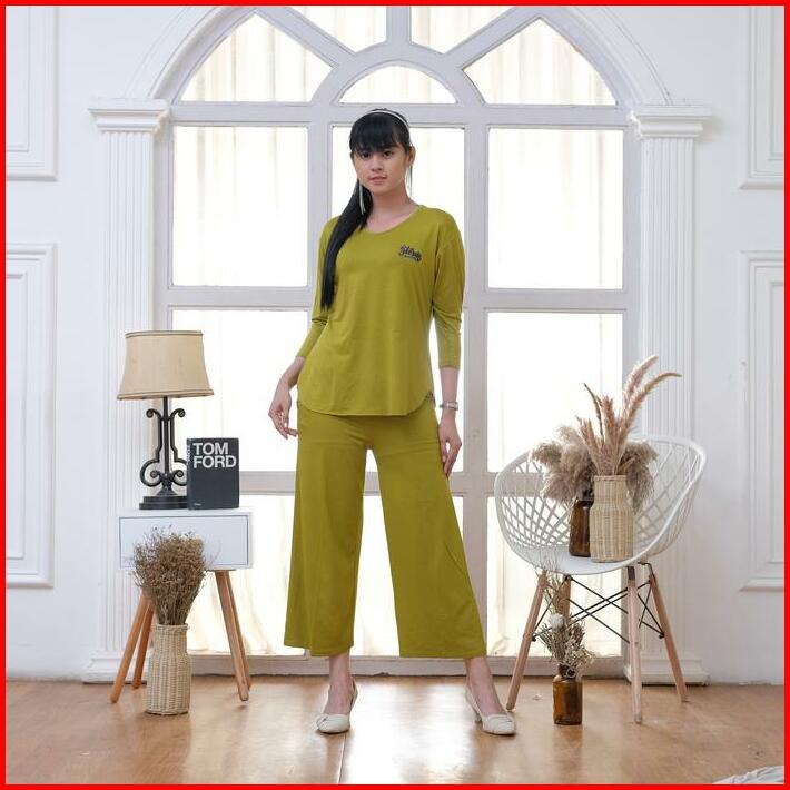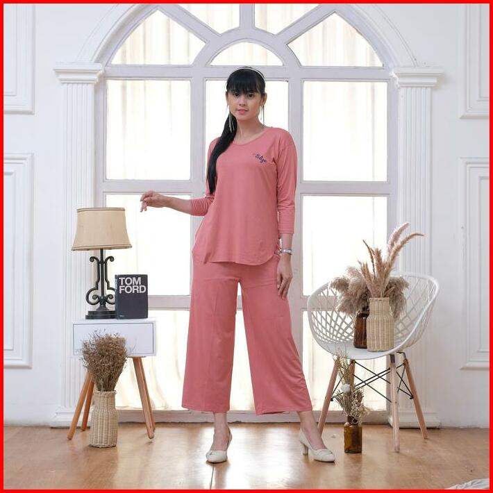 Setelan Kaos Wanita Setcel Spandek Premium Lengan 7 8 One Set Murah Terbaru Atasan Baju Oversize Belah Samping Celana Pa