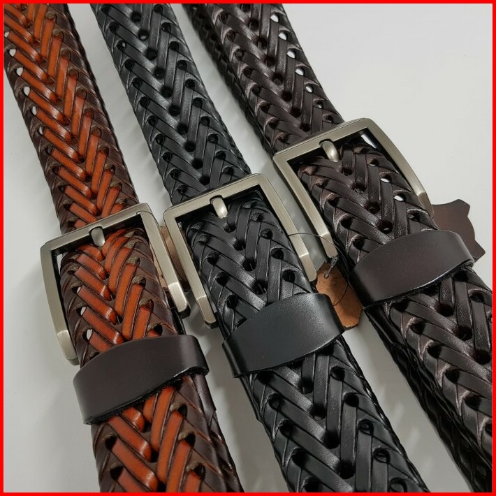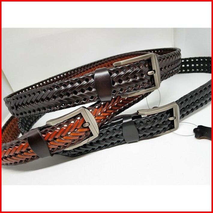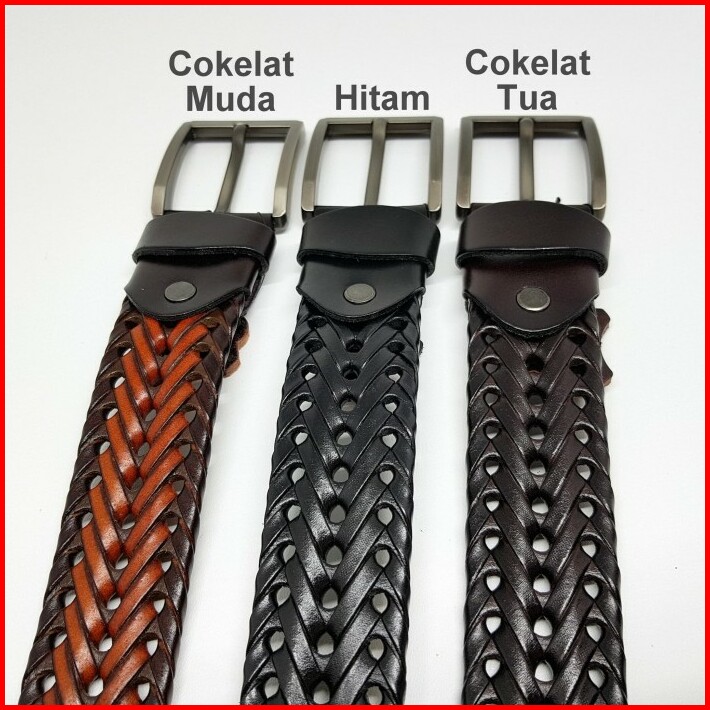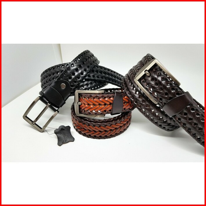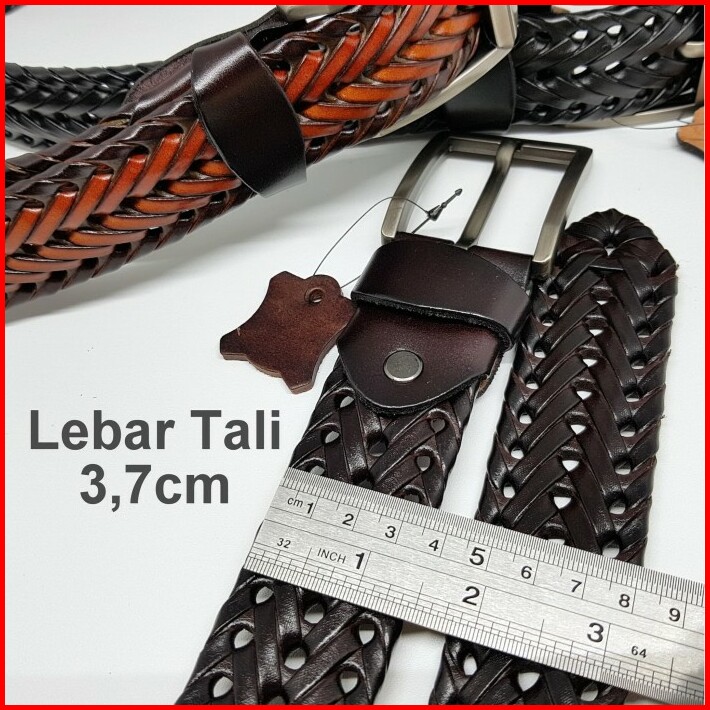 Gesper Ikat Pinggang Pria Anyam Kepang Besar 3 7cm- Kulit