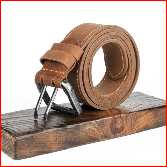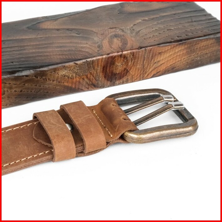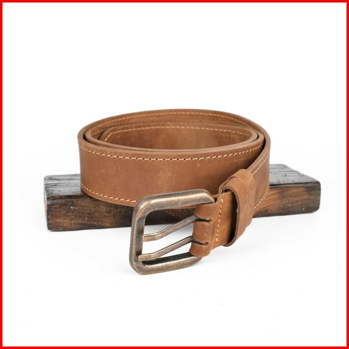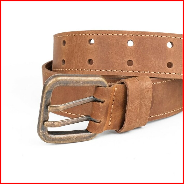 Gesper Ikat Pinggang Pria Kulit Asli Dua Lapis 4 Cm Jarum 2 Ch Tan