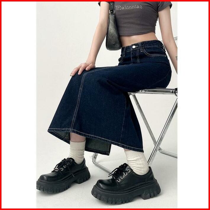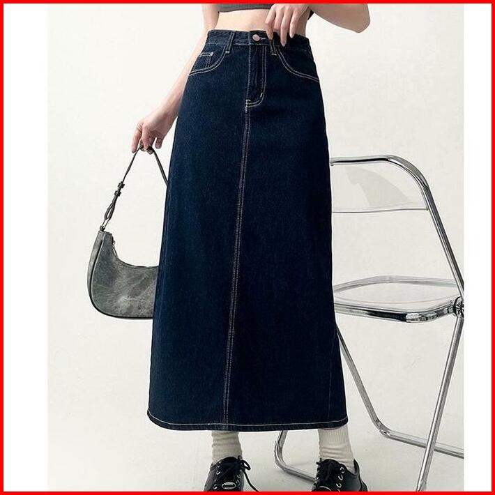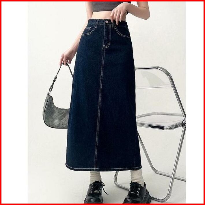 Rok Jeans Span Highwaist Premium Hitam Panjang Wanita