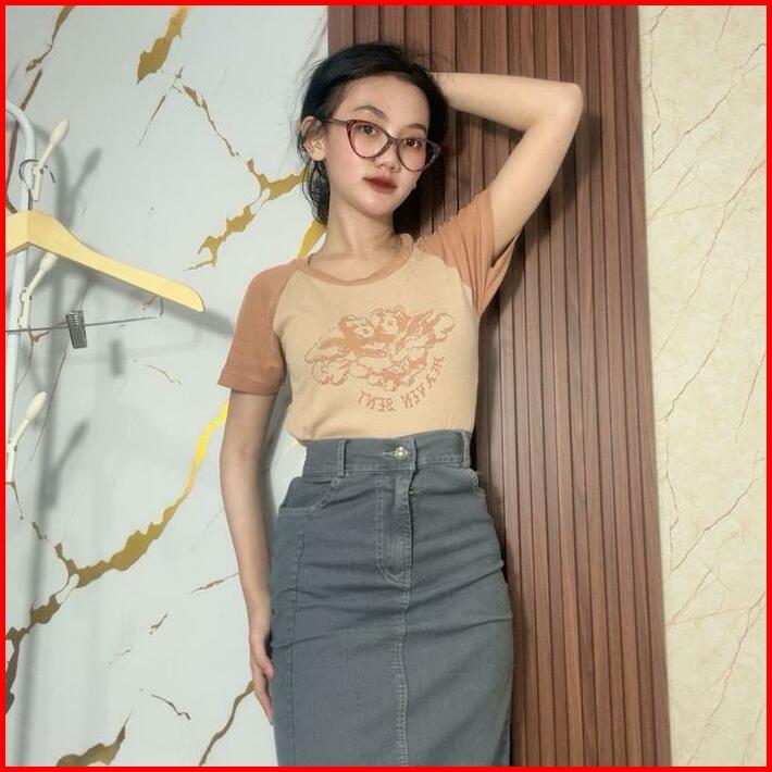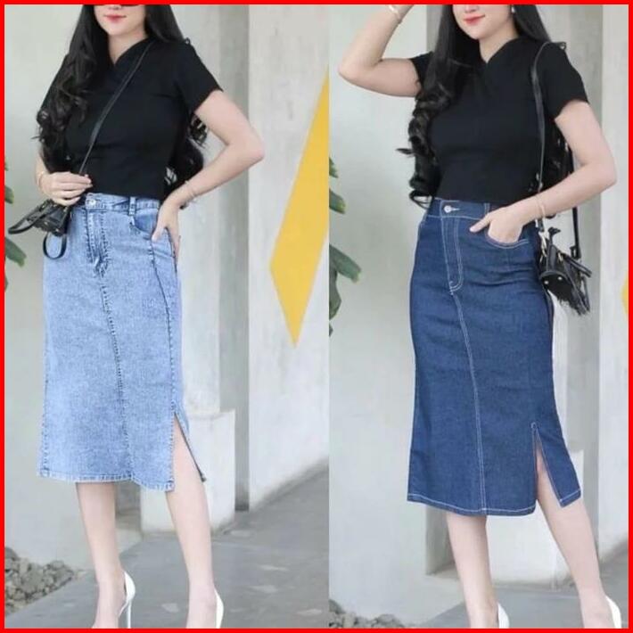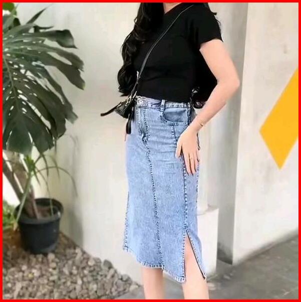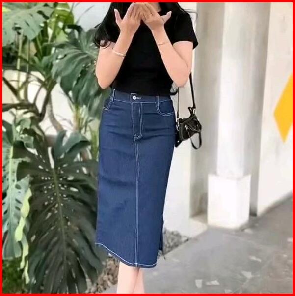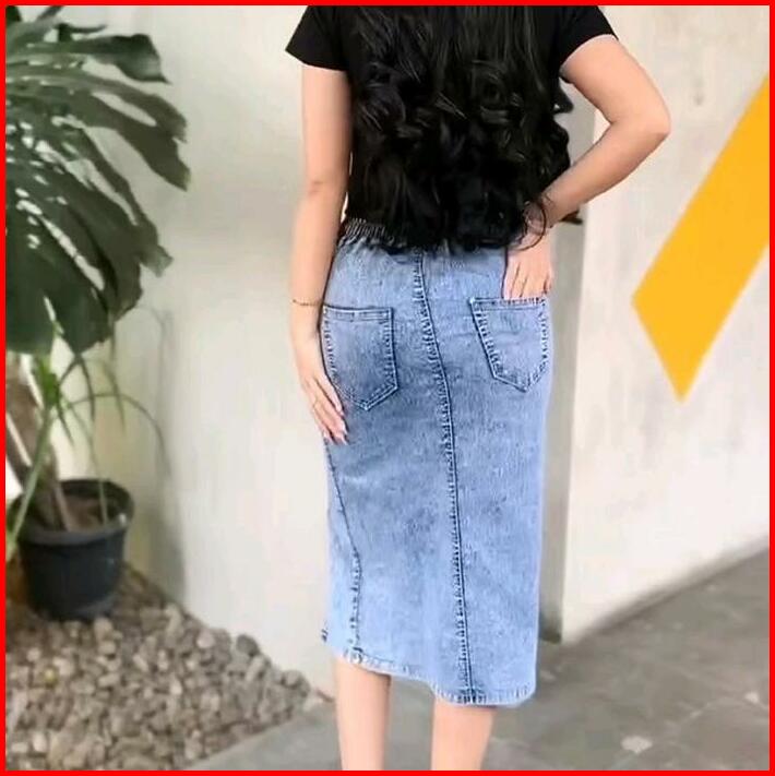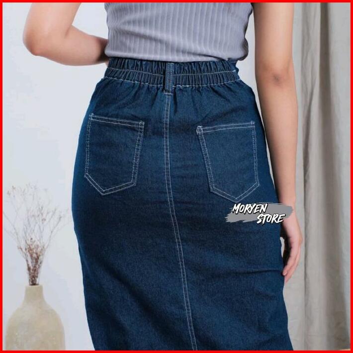 Ms. Nycta Rok Jeans Span Rok Denim Pendek Belah Samping Seo Santai Polos Slim-fitting Karet Kancing Stretch Rok Jeans Mi