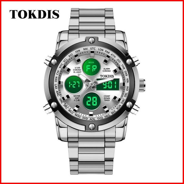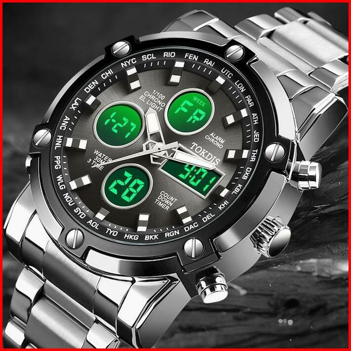 Diskon Tokdis Jam Tangan Pria 2576 Double Time Rantai Stainless Steel Water Resistant 3 Atm Kaca Watches