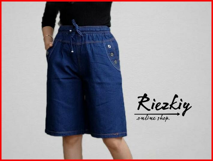 Celana Jeans Pendek Santai 3 4 Wanita Terbaru Celana Hotpants Jeans Wanita Kekinian Denim Kancing Karet Panjang Dewasa R