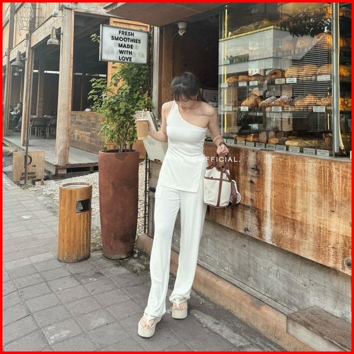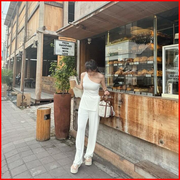 Pixie Set Setelan Rajut Wanita Oneset Knit Set Atasan Top Basic Celana Panjang Highwaist Premium Rajut Rib Linen Kulot C