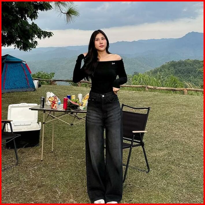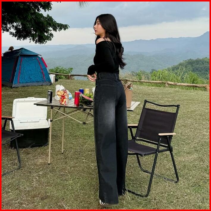 Unisex Celana Jeans Panjang Wanita Loose Wisker Terbaru 2025