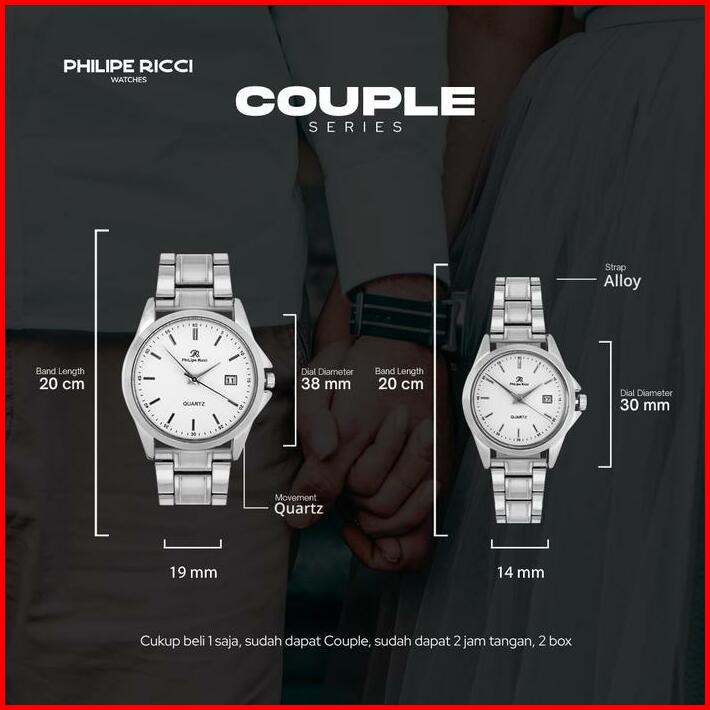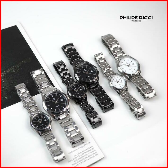 Philipe Ricci Jam Tangan Couple Rantai Besi Pria Wanita Terbaru Elegan 7501 Free Box