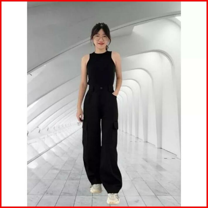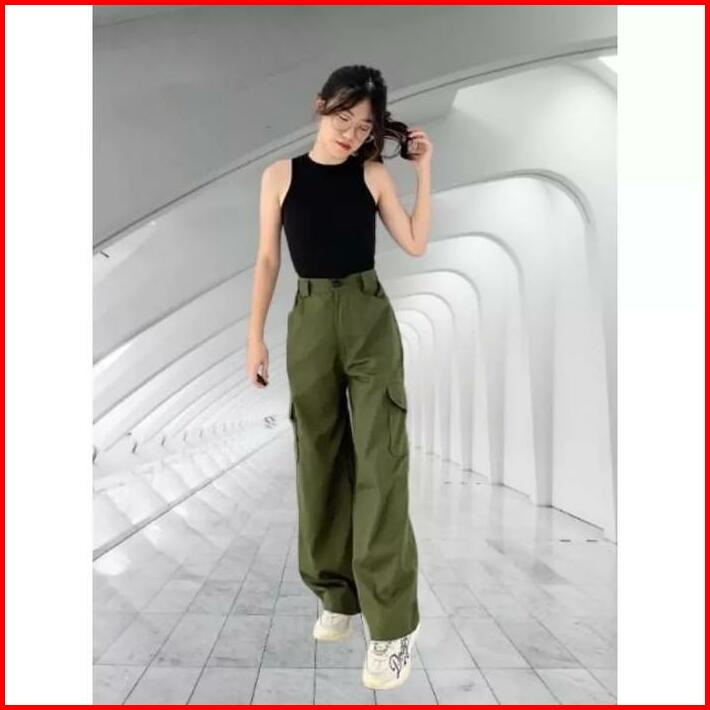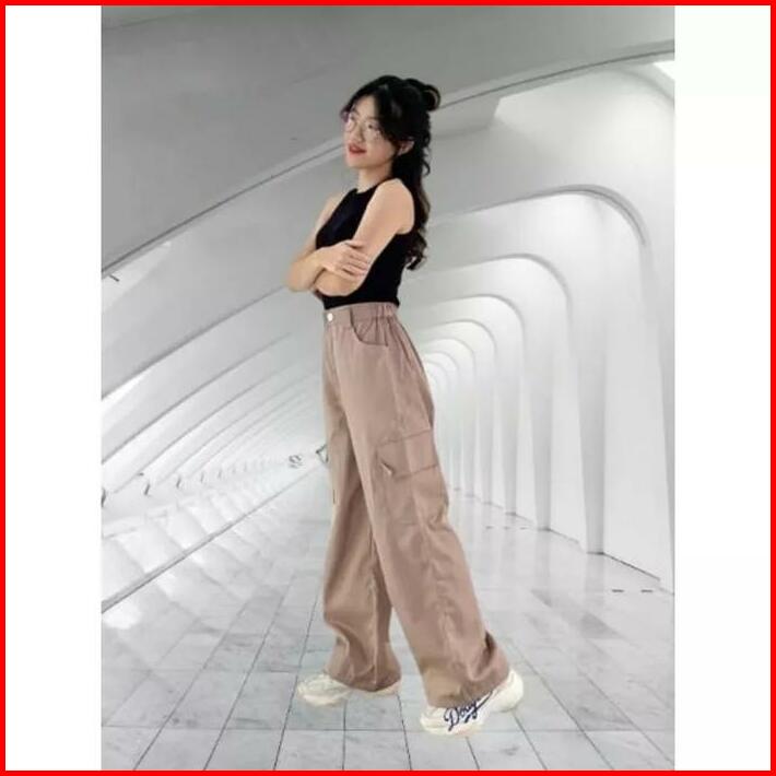 Celana Panjang Wanita Cargo Cargos Wanita Casual Pant Basic Formal Kulot Linen Katun Crinkle Loose Airflow Bawahan Dewas