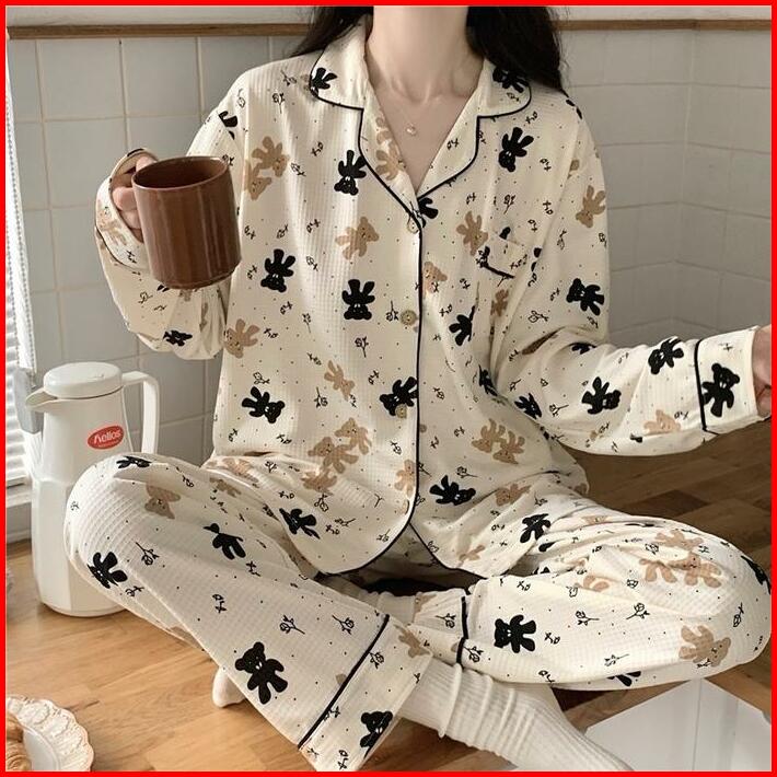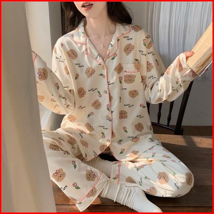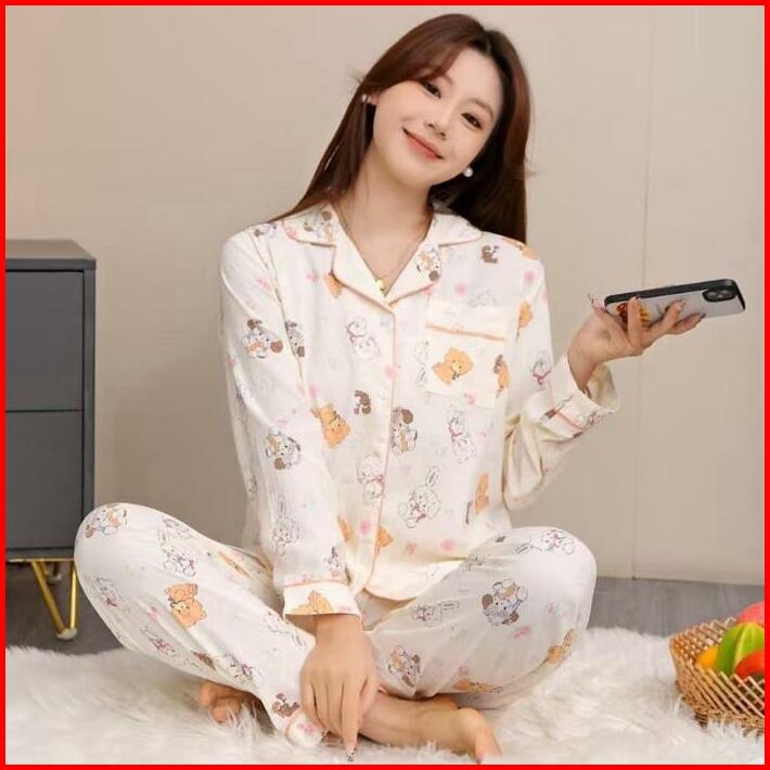 Markas Fashion99 Baju Tidur Wanita Piyama Setelan Celana Panjang Spandek Tebal Dewasa Pendek Katun Motif