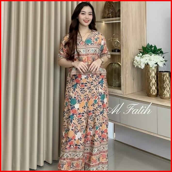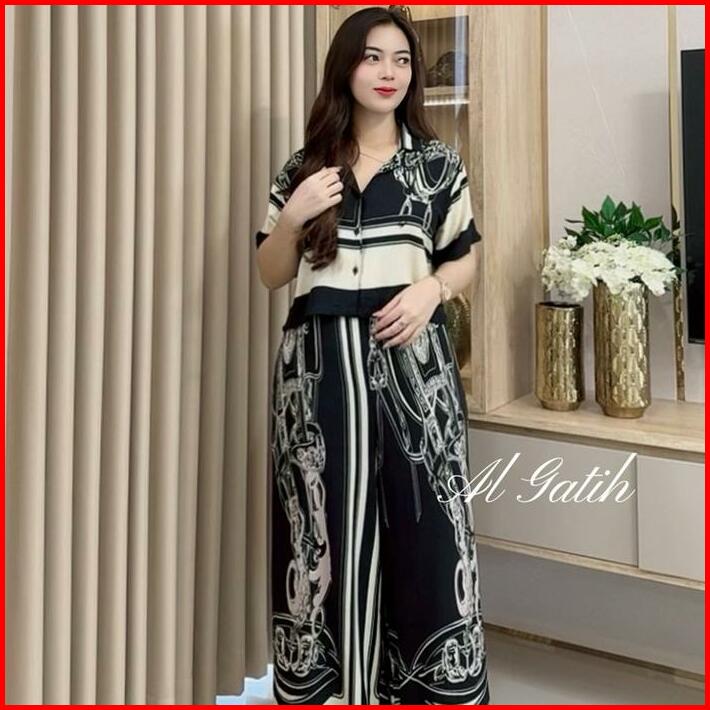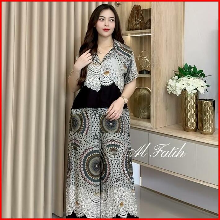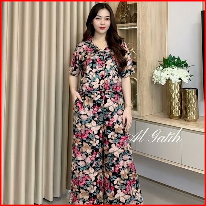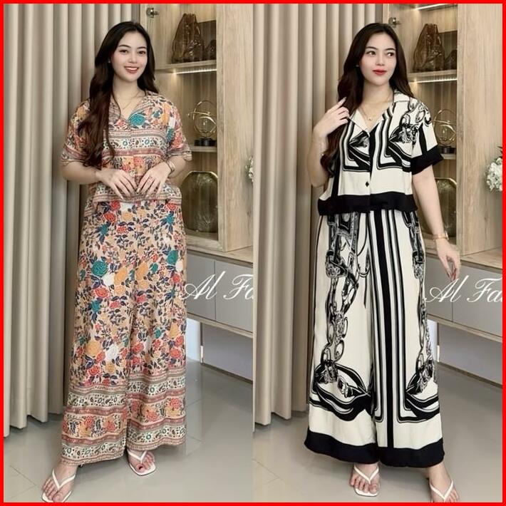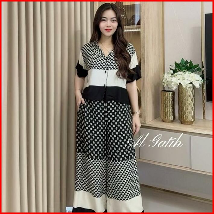 One Set Crop Setelan Celana Kulot Wanita Hightwaist Rayon Premium Busui Friendly Kancing