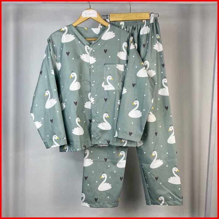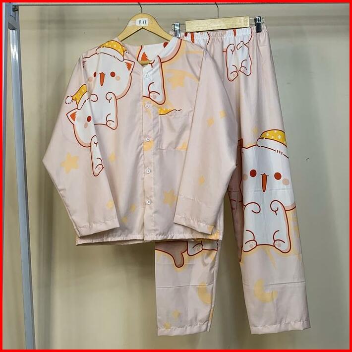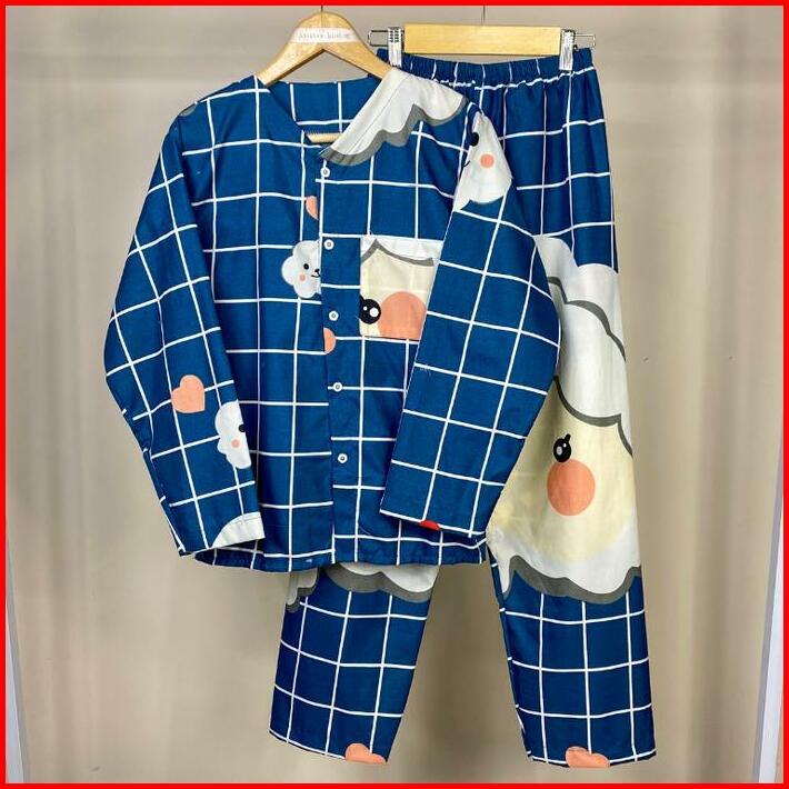 Piyama Set Baju Tidur Wanita Dewasa Setelan Baju Celana Panjang Lengan Panjang Kancing Termurah High Quality Nyaman Moti