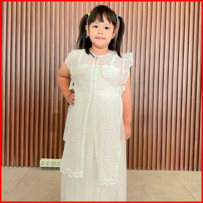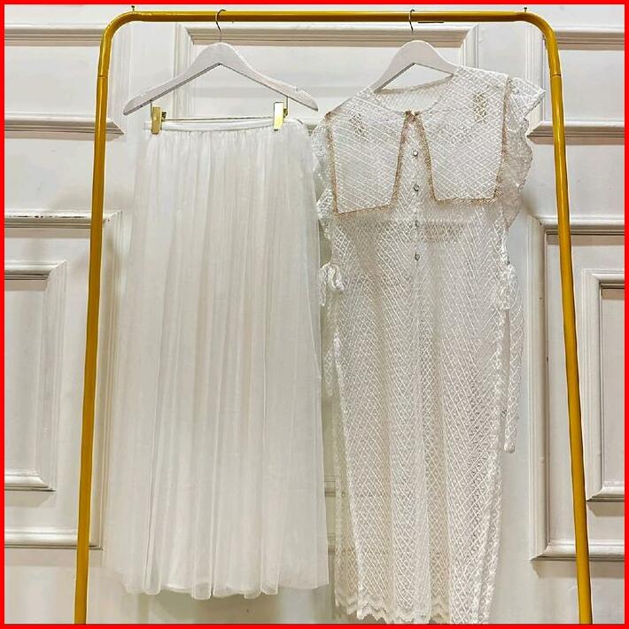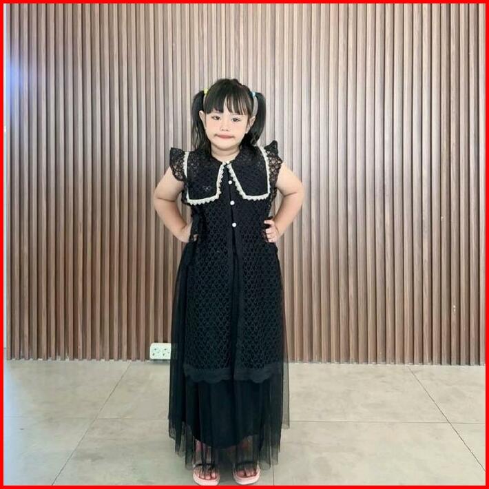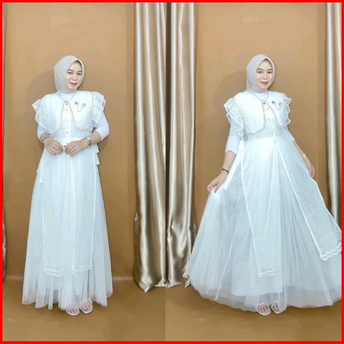 Setelan Wanita Naliya 2in1 Outer Ni Rok Brukat Mix Tille Renda Hitam Putih