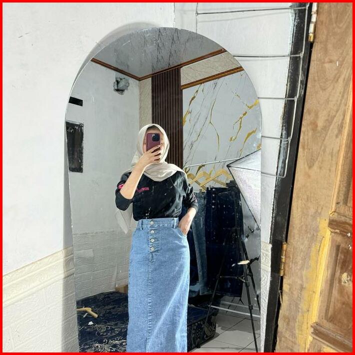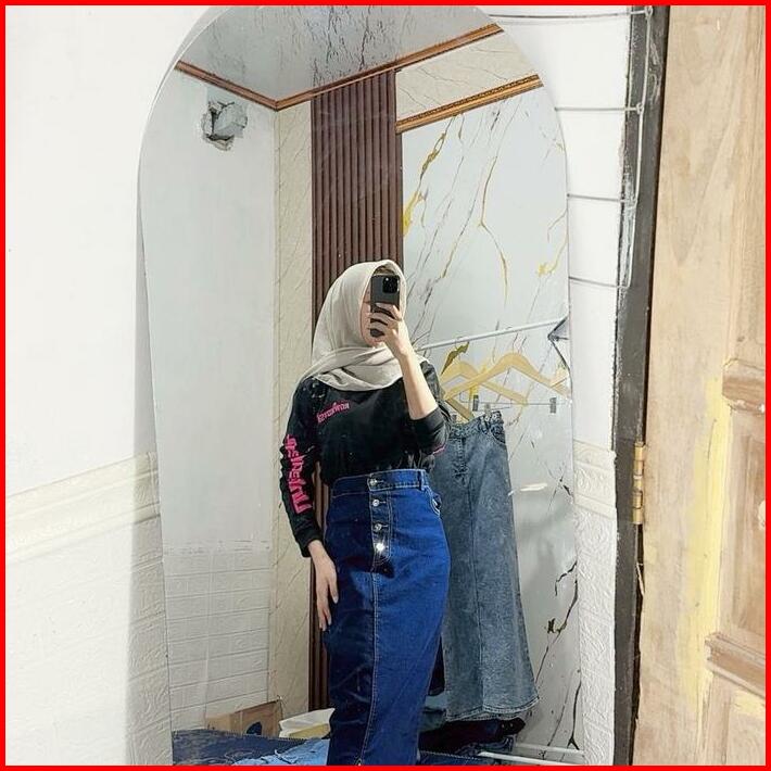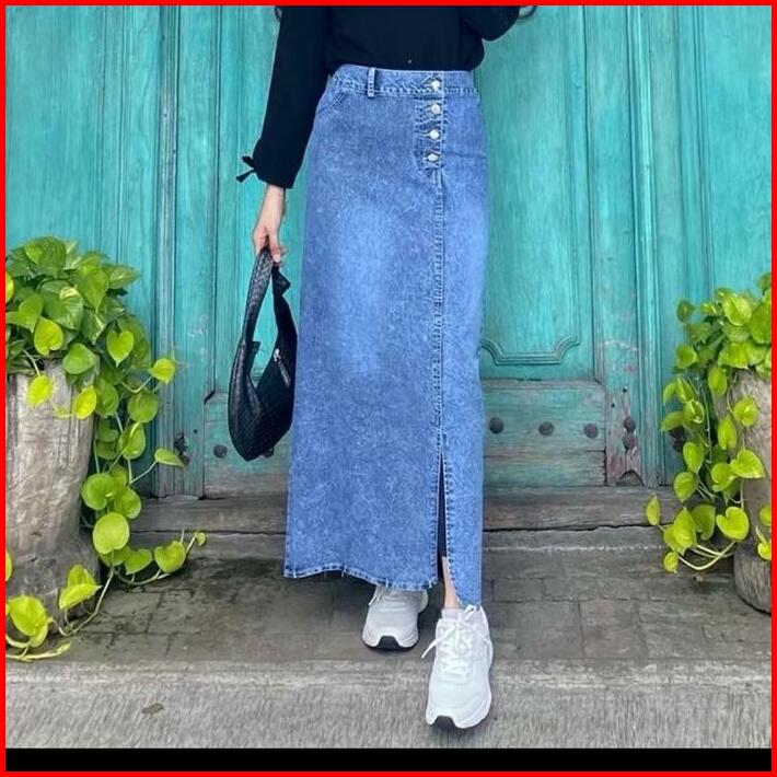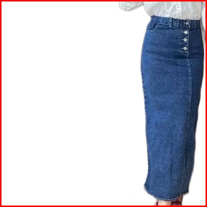 Rebecca Rok Jeans Kancing Samping Rok Belah Samping Rok Span Jeans Dewasa Panjang Cewek