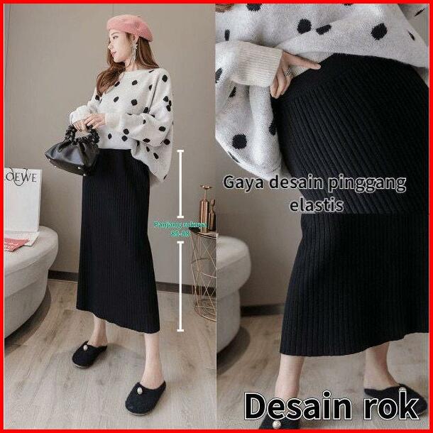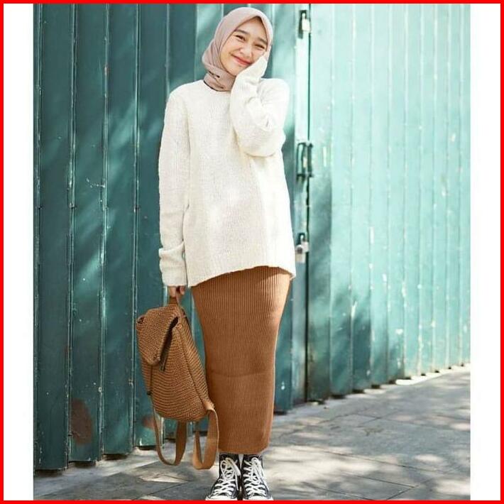 Zoey Rok Span Rajut 7 8 Rok Span Rajut Polos Bawahan Wanita Korean Style Shabhira16