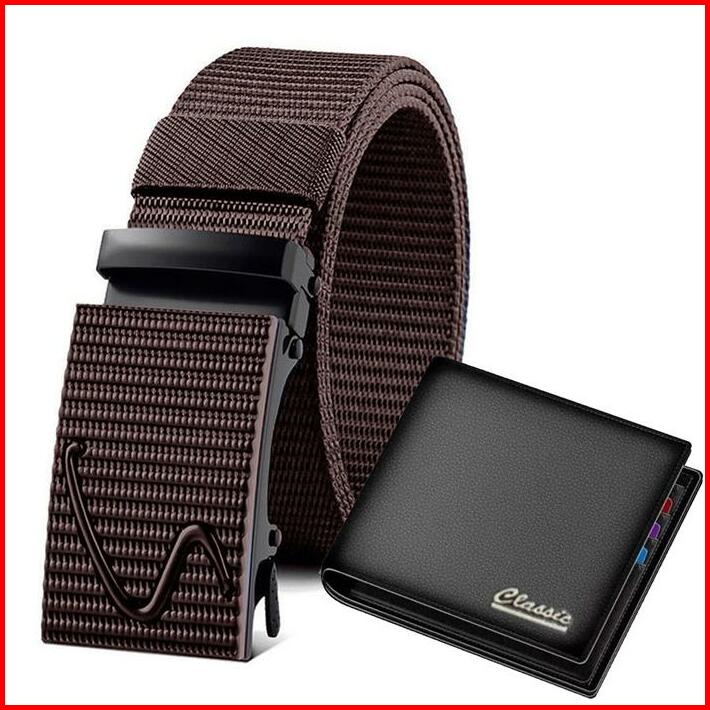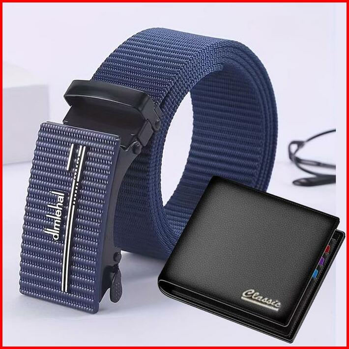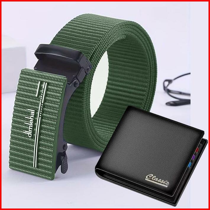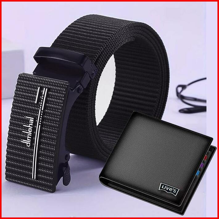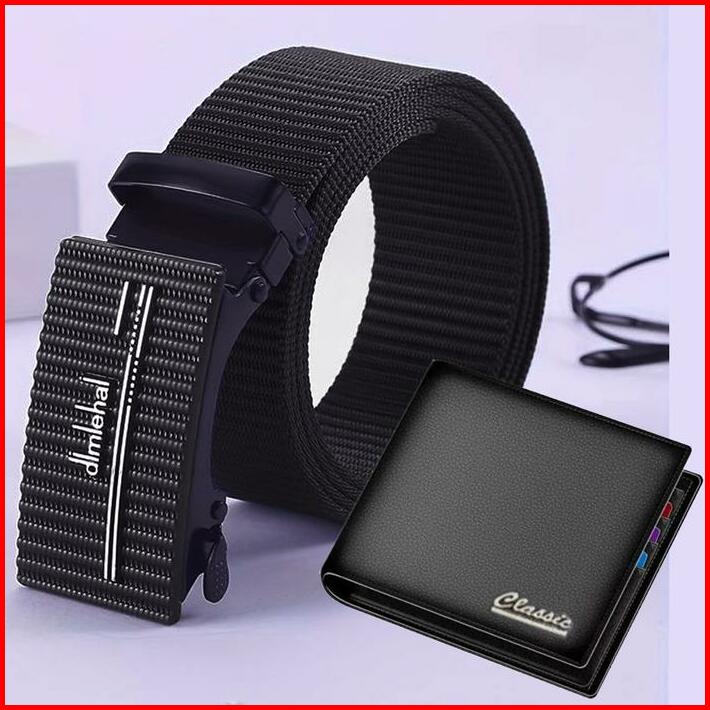 Bonus Dompet Pria Ikat Pinggang Pria Panjang 120cm Gesper Pria Sabuk Sekolah Ikat Pinggang Kerja Kantor Anti Xray Gesper