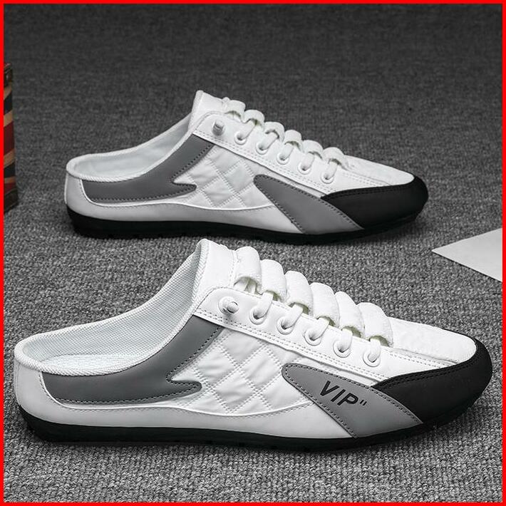 Sepatu K31 Sepatu Pria Slip On Sneakers Backless Sneakers Mule Trip Sepatu Olahraga Kasual Sepatu Flat Shoes Hitam