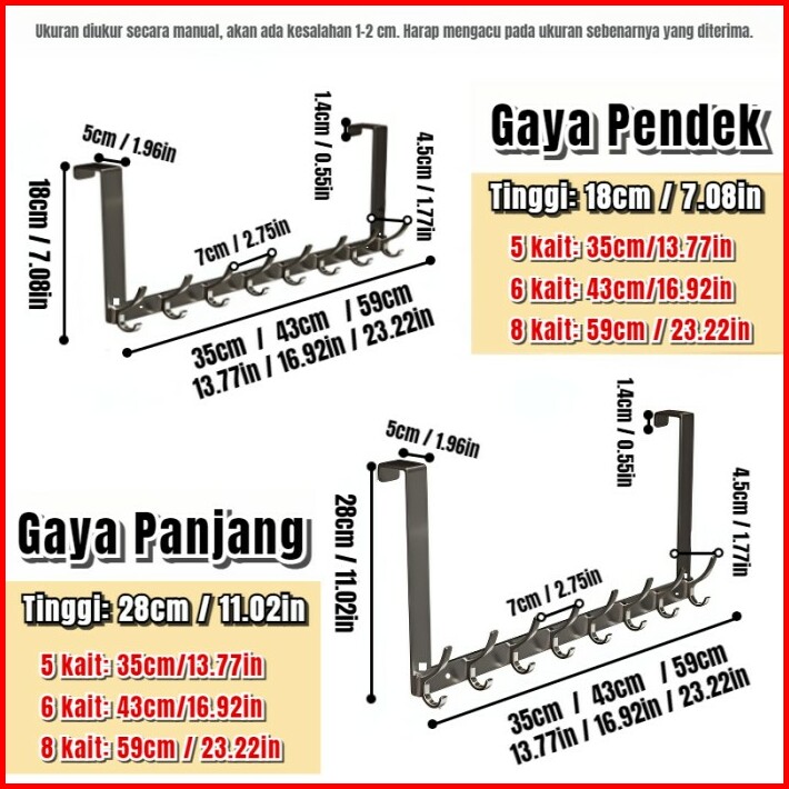 Gantungan Baju Pintu Alumunium Rak Tanpa Paku Kuat Dinding Besar Tebal Premium Gantungan Kamar Tidur Kamar Mandi Door Ho
