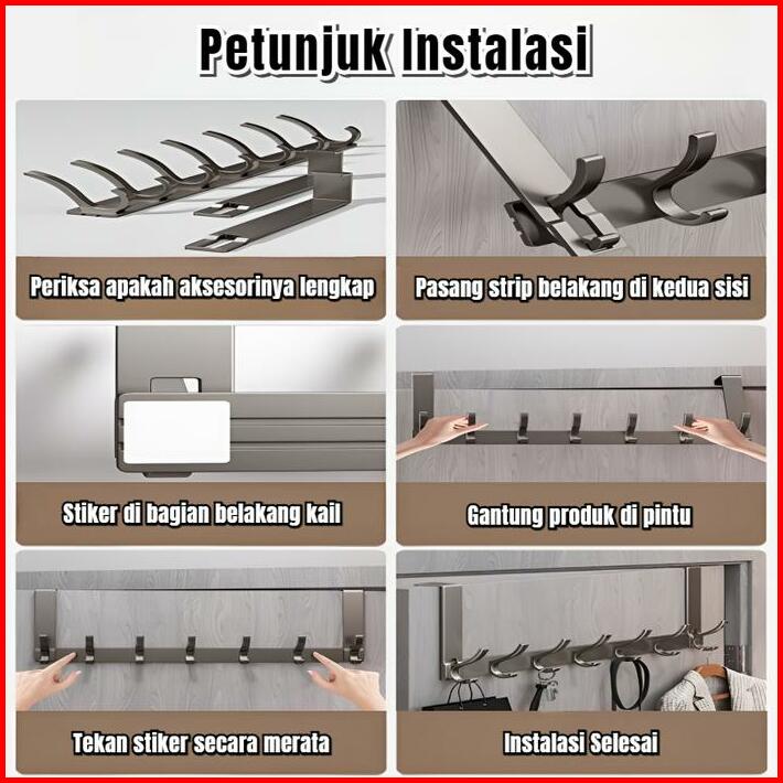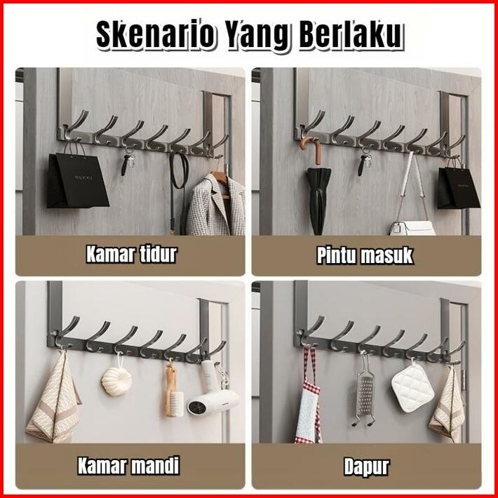 Gantungan Baju Pintu Alumunium Rak Tanpa Paku Kuat Dinding Besar Tebal Premium Gantungan Kamar Tidur Kamar Mandi Door Ho