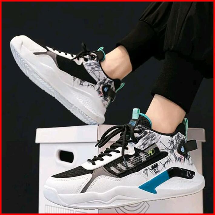 Sepatu Sneakers Cowok Keren Sepatu Basket Pria High Top Kekinian Motif Anime Terbaru Sport Original Casual Karet Shoes O