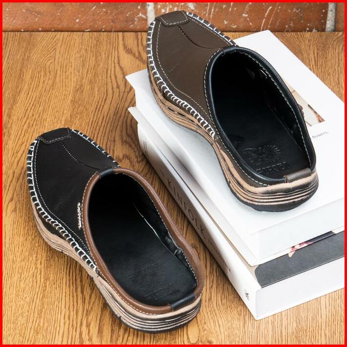 Sendal Sepatu Pria Sepatu Sandal Bustong Slop Kulit Asli Tbs01