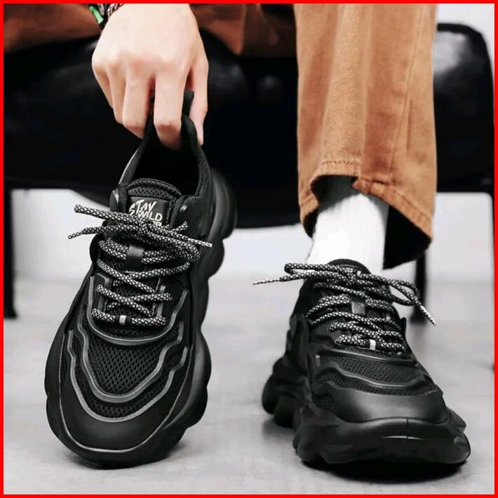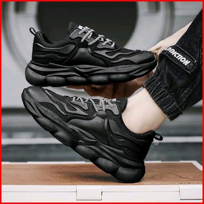 Sepatu Pria Sneakers Running Sepatu Sekolah Hitam Kets Sepatu Kuliah Olahraga Lari Cowok Nyaman Dipakai Warna Hitam Outd
