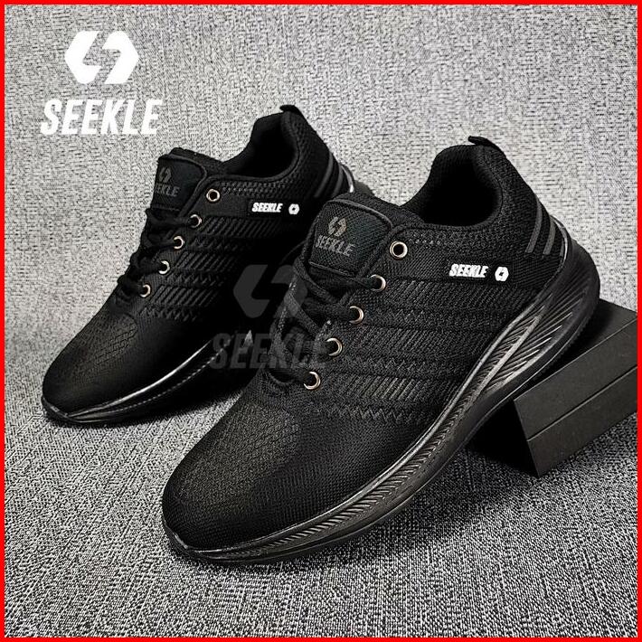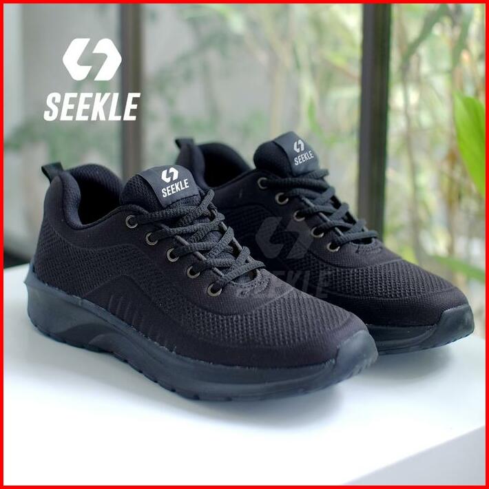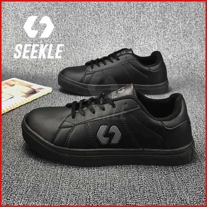 Seekle Sepatu Sneakers Pria Wanita Hitam Polos Kasual Olahraga Hak Datar Casual Shoes