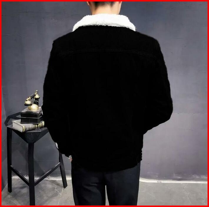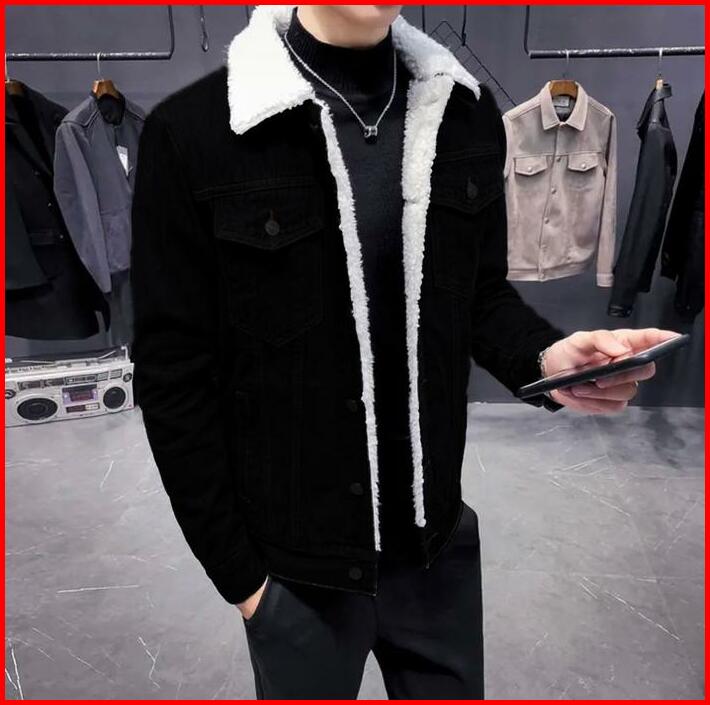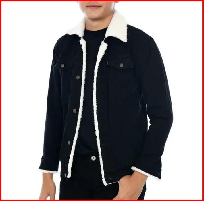 Jaket Jeans Denim Sherpa Hitam Pekat Pria Wanita Bulu Lembut Tebal Nyaman Casual Casual Blazer Formal