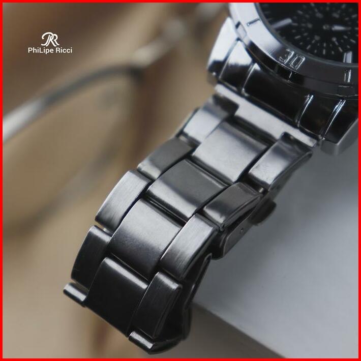 Philipe Ricci Jam Tangan Pria Rantai Analog Diameter Bulat Ukuran Sedang Strap Tali Besi Gaya Modern Formal 5024 Free Bo