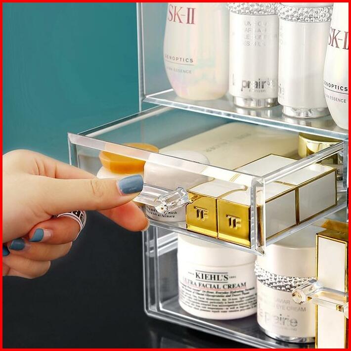 Rak Kosmetik Dengan Laci Anti Debu Acrylic Storage Organizer Tempat Make Up Skincare Rak Akrilik Multifungsi