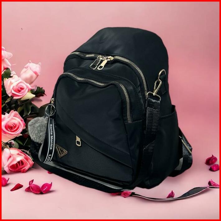 Tas Ransel Fashion Wanita Remaja Kekinian Backpack Multifungsi Bisa Di Gendong Dan Selempang Bahan Kulit Pu Hitam Sekola