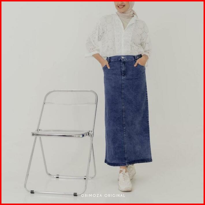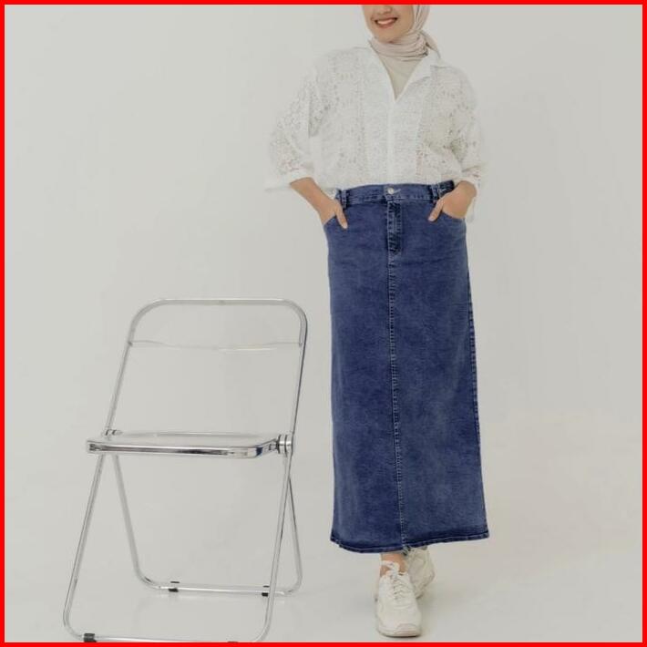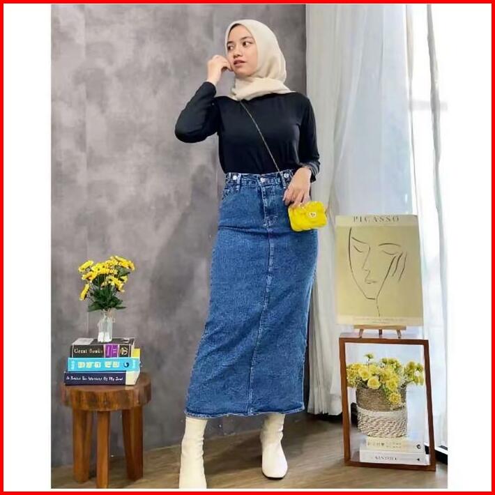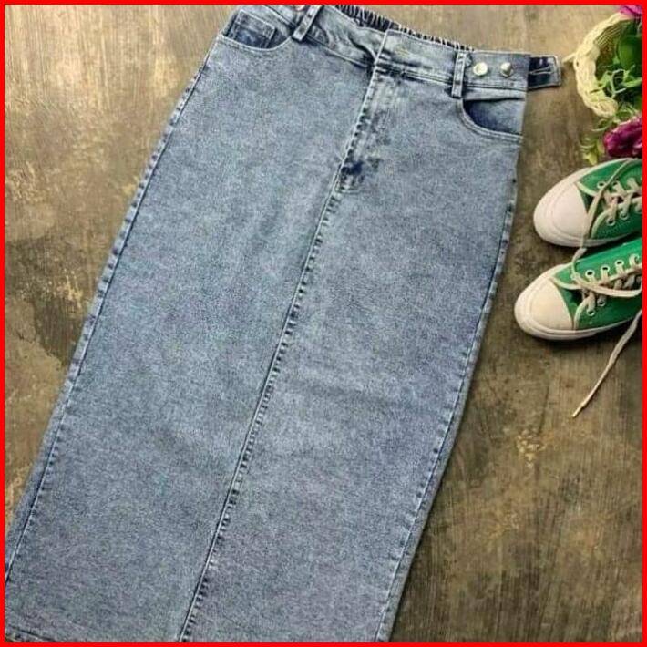 Rok Jeans Span Theana Skirt Wanita Belah Sobek Belakang Korean Style