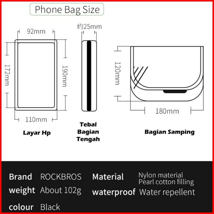 Rockbros Tas Frame Sepeda 030-60bk Front Bag Handphone 3 Slot