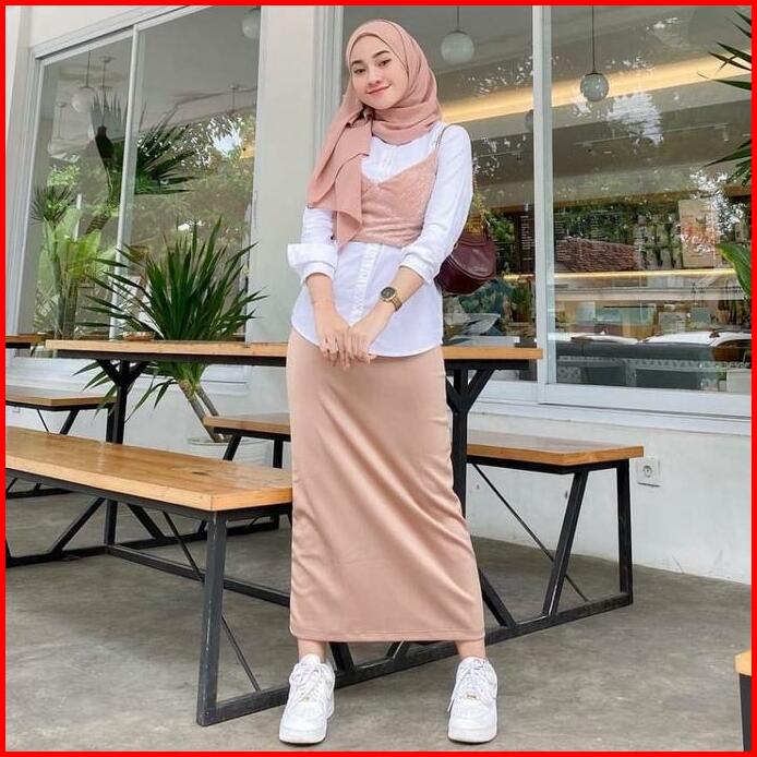 Rok Span Panjang Bahan Scuba Rok Span Rok Kerja Span Scuba Panjang Premium Slim-fitting