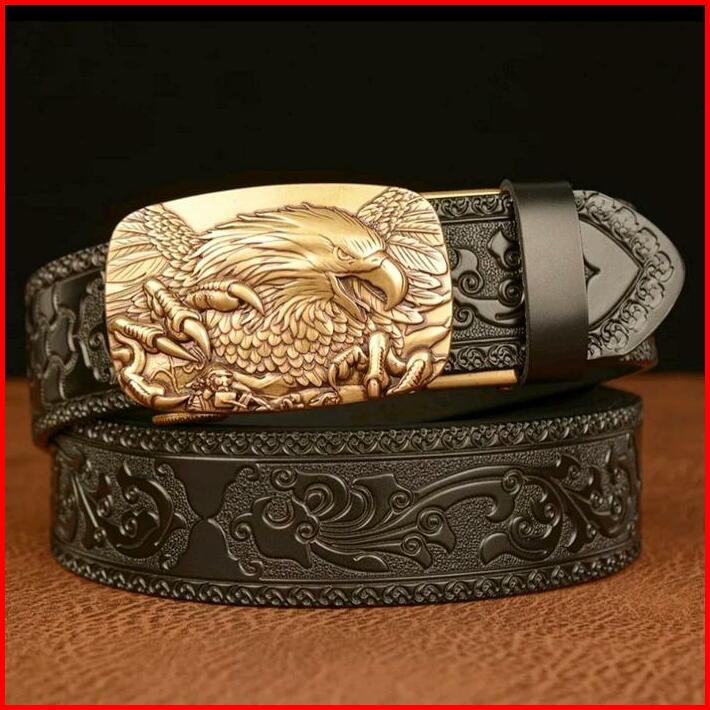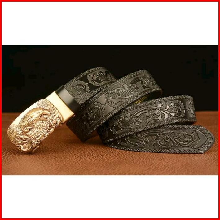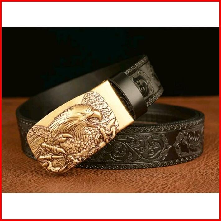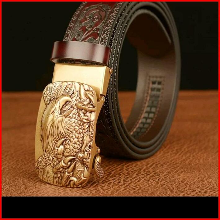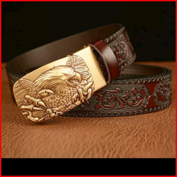 Ikat Pinggang Pria Kulit Sapi Asli Import Kepala Gesper Elang Dan Ular Naga Coklat Hitam