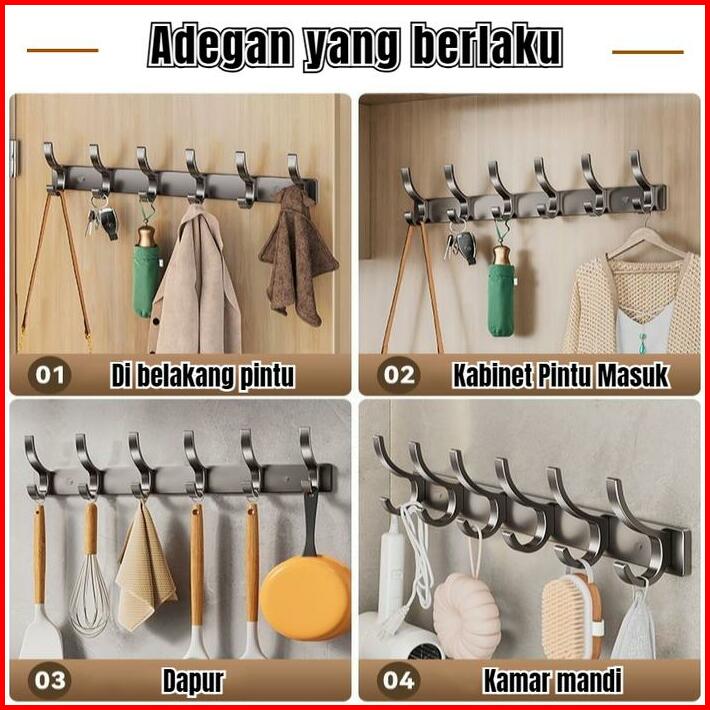 Gantungan Pintu Pakaian Bebas Bor Gantungan Dinding Penyimpanan Aluminium Rak Organizer Gantung Kamar Mandi Toilet