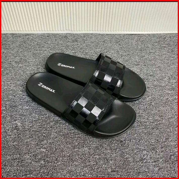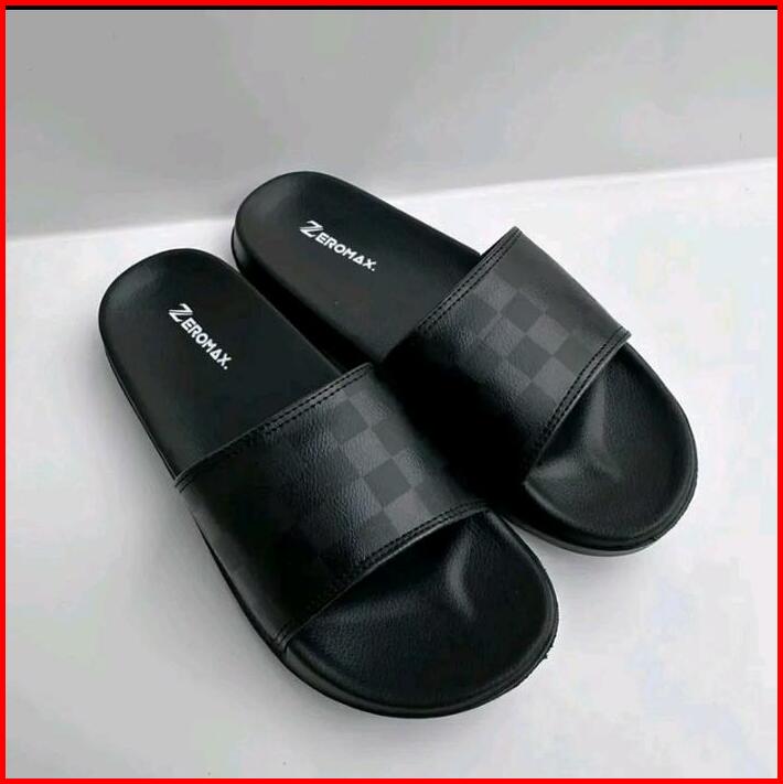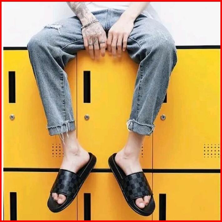 Sandal Slop Distro Motif Catur Black Shoes Karet Pria Sendal Hitam Selop Tidak Licin Slippers Kasual